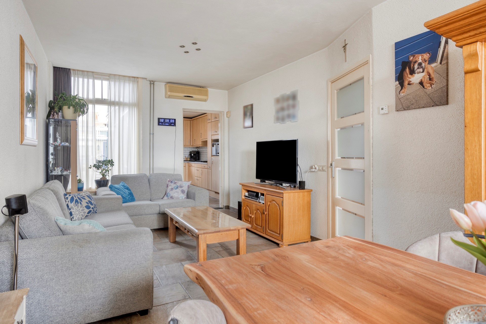 De woonkamer heeft een rechthoekige indeling en voelt licht en ruim aan. De gemêleerde tegelvloer in warme natuurtinten loopt naadloos door richting de keuken en is voorzien van comfortabele vloerverwarming. Een airco-unit zorgt voor extra comfort tijdens warme zomerdagen.
