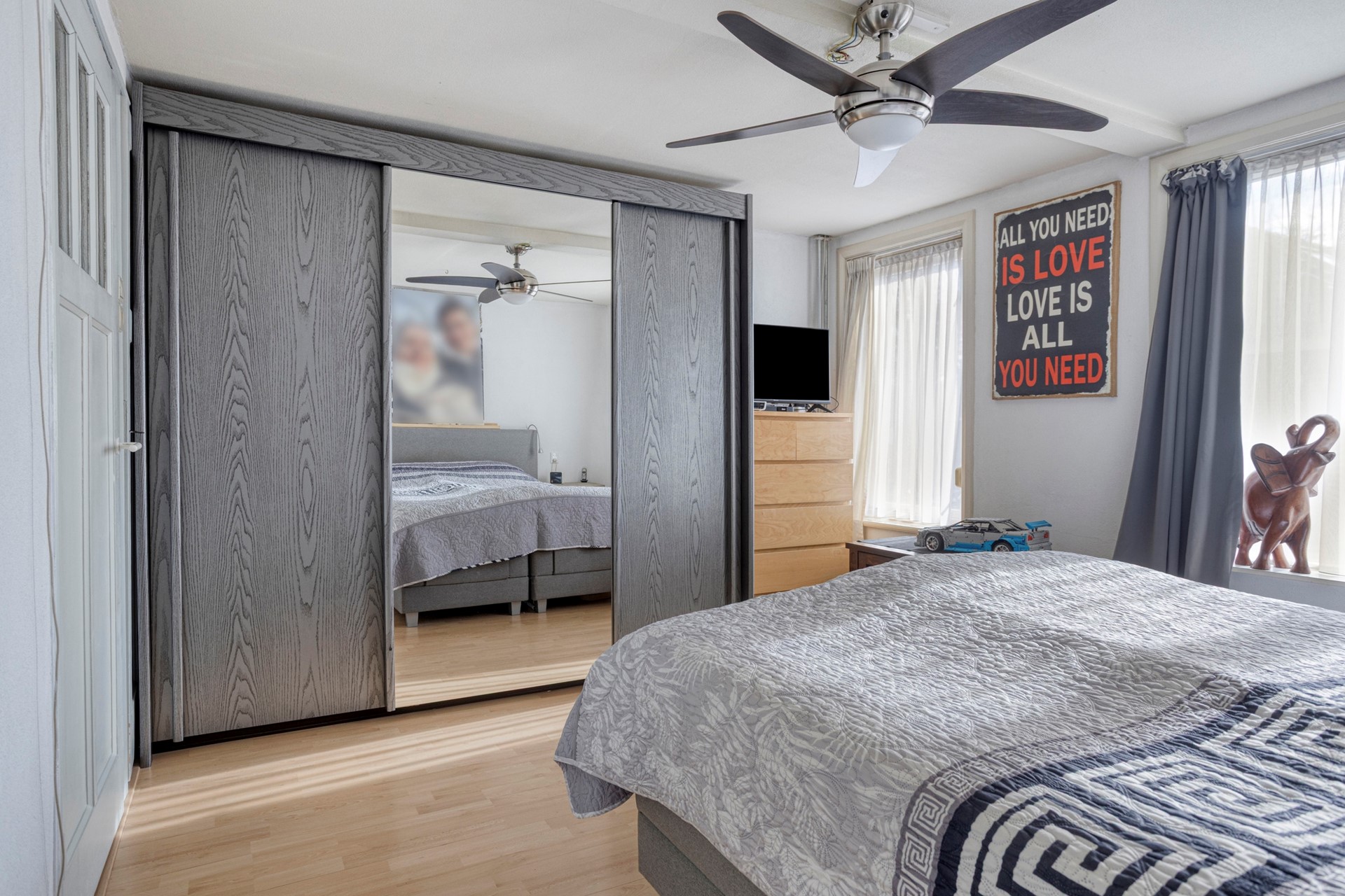 De royale ouderslaapkamer aan de voorzijde biedt volop ruimte. De aanwezige inbouwkast kan eenvoudig weer in gebruik worden genomen.
