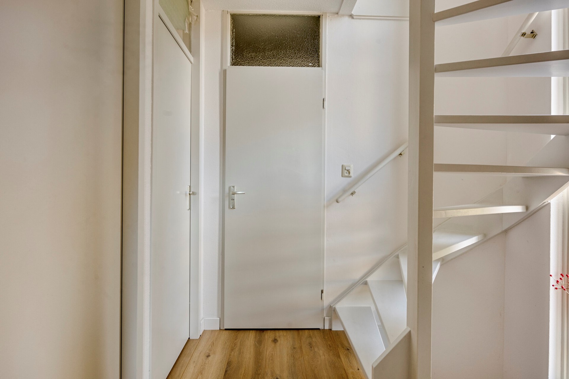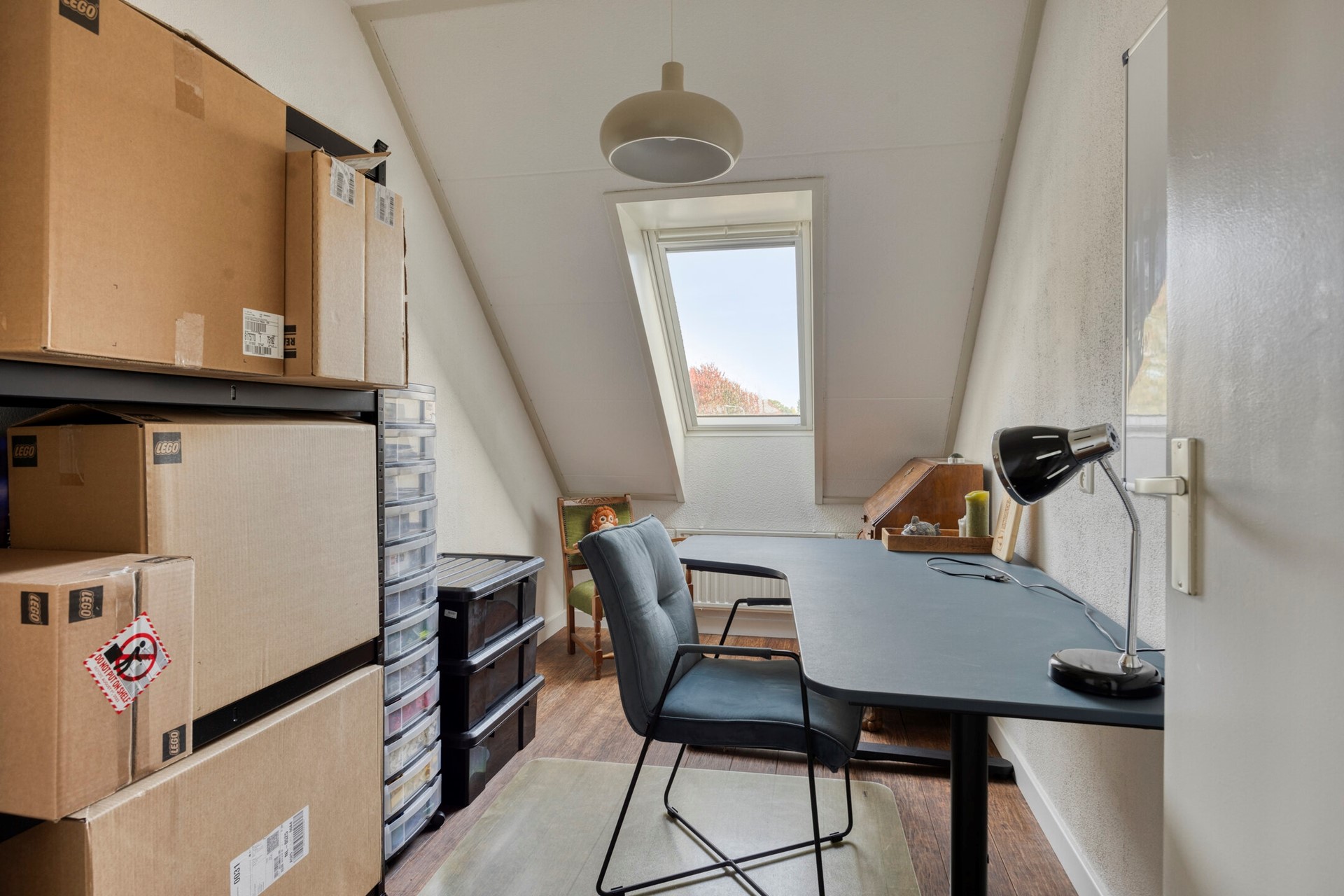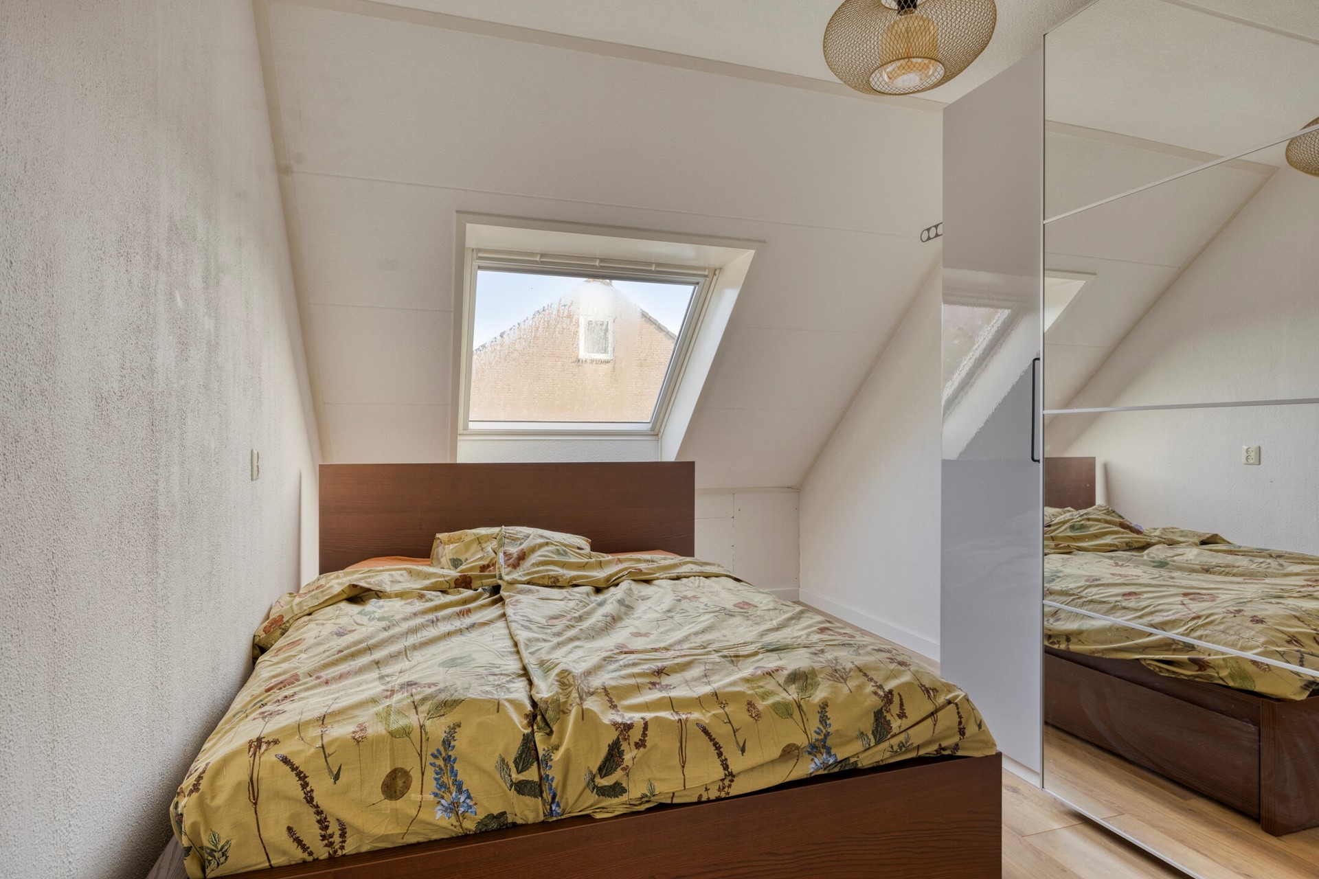 Via een vaste trap bereikbare tweede verdieping. Op de voorzolder vindt u de aansluitingen voor de wasmachine en droger. Tevens is er een 4e slaapkamer gecreëerd en dankzij de afwijkende dakconstructie is deze ruim en licht.