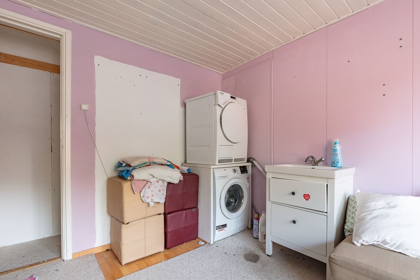 Ruimte genoeg! Deze verdieping bestaat uit een open ruimte met aansluitingen voor wasapparatuur, een laminaatvloer en twee dakramen. Vanuit deze ruimte loopt u naar de twee slaapkamers. Eén van de slaapkamers is ook voorzien van een wastafel.