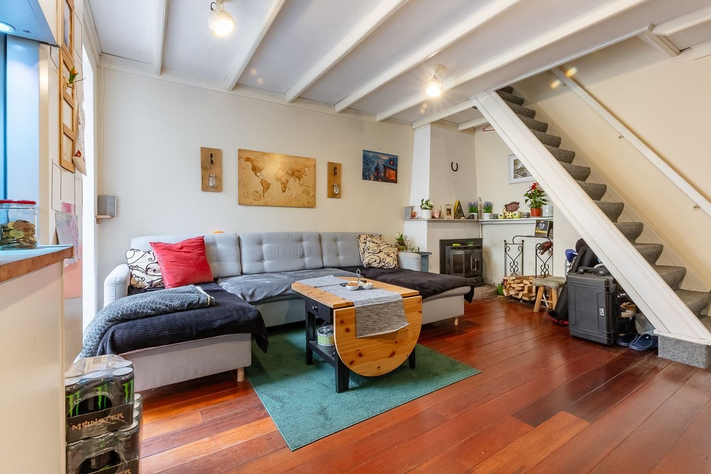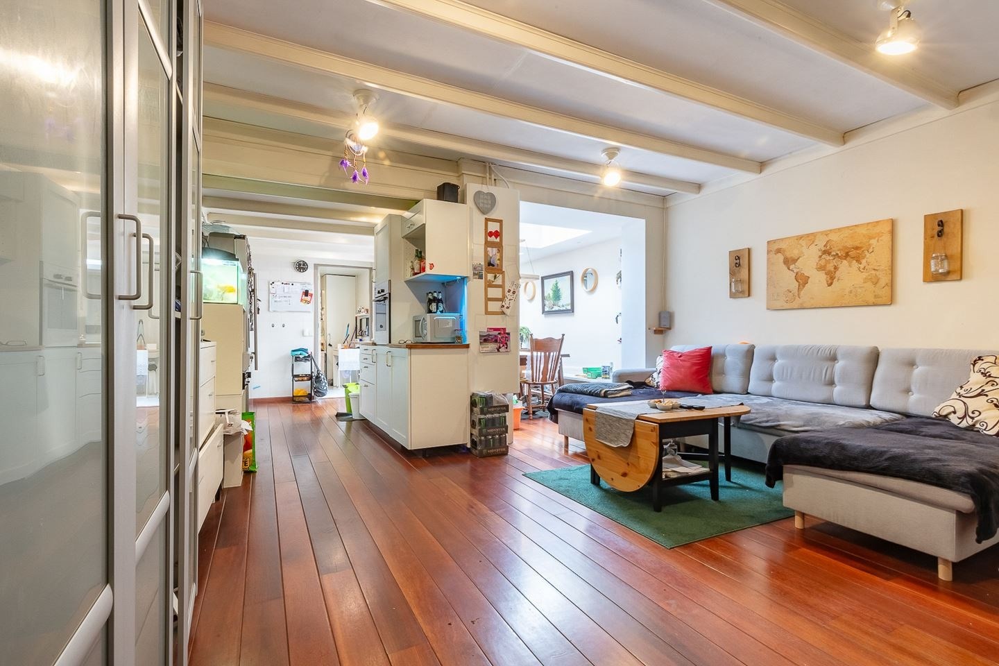 Van harte welkom binnen! Bij binnenkomst komt u aan in de hal/entree, een slaapkamer en een ruime woonkamer. De slaapkamer bevindt zich aan de voorzijde. De uitgebouwde woonkamer is volledig gestuct en heeft een open haard, twee lichtkoepels, ingebouwde spots, openslaande tuindeuren en een houten vloer. De semi-open keuken heeft twee rechte opstellingen met houten werkbladen en is uitgerust met een vaatwasser, oven, magnetron en een Amerikaanse koelkast. De badkamer heeft een ligbad, wastafel en een apart toilet, evenals een bergkast met een Vaillant cv-combiketel (2016). Zowel vanuit de badkamer als de woonkamer is er toegang tot de achtertuin.