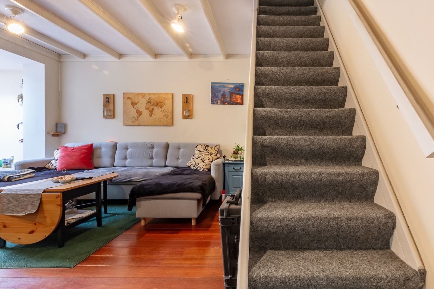 Via de eerste etage loopt u via de badkamer naar het heerlijke dakterras waar je in de zomer heerlijk kunt zonnen en in de winter gemakkelijk een boekje kunt lezen of de was buiten kunt laten drogen.
