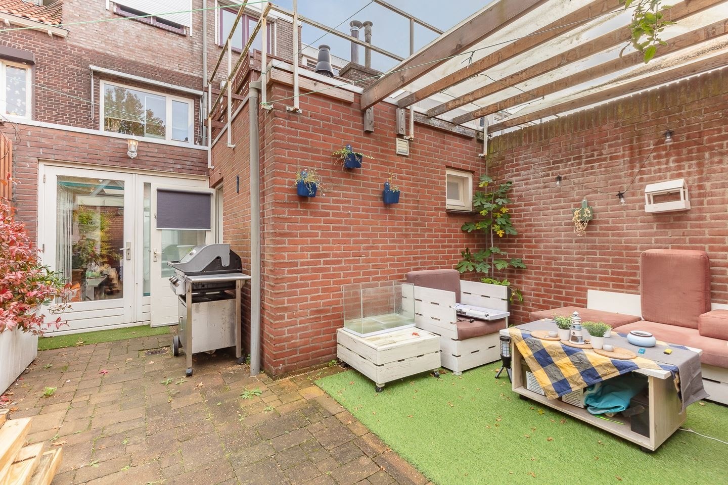 Het dakterras en de achtertuin ligt op het westen