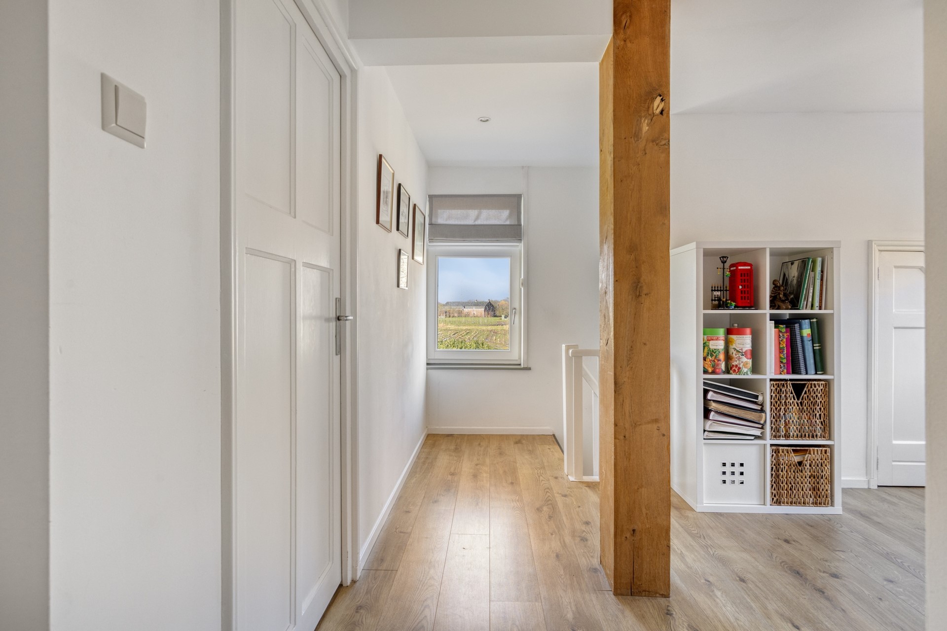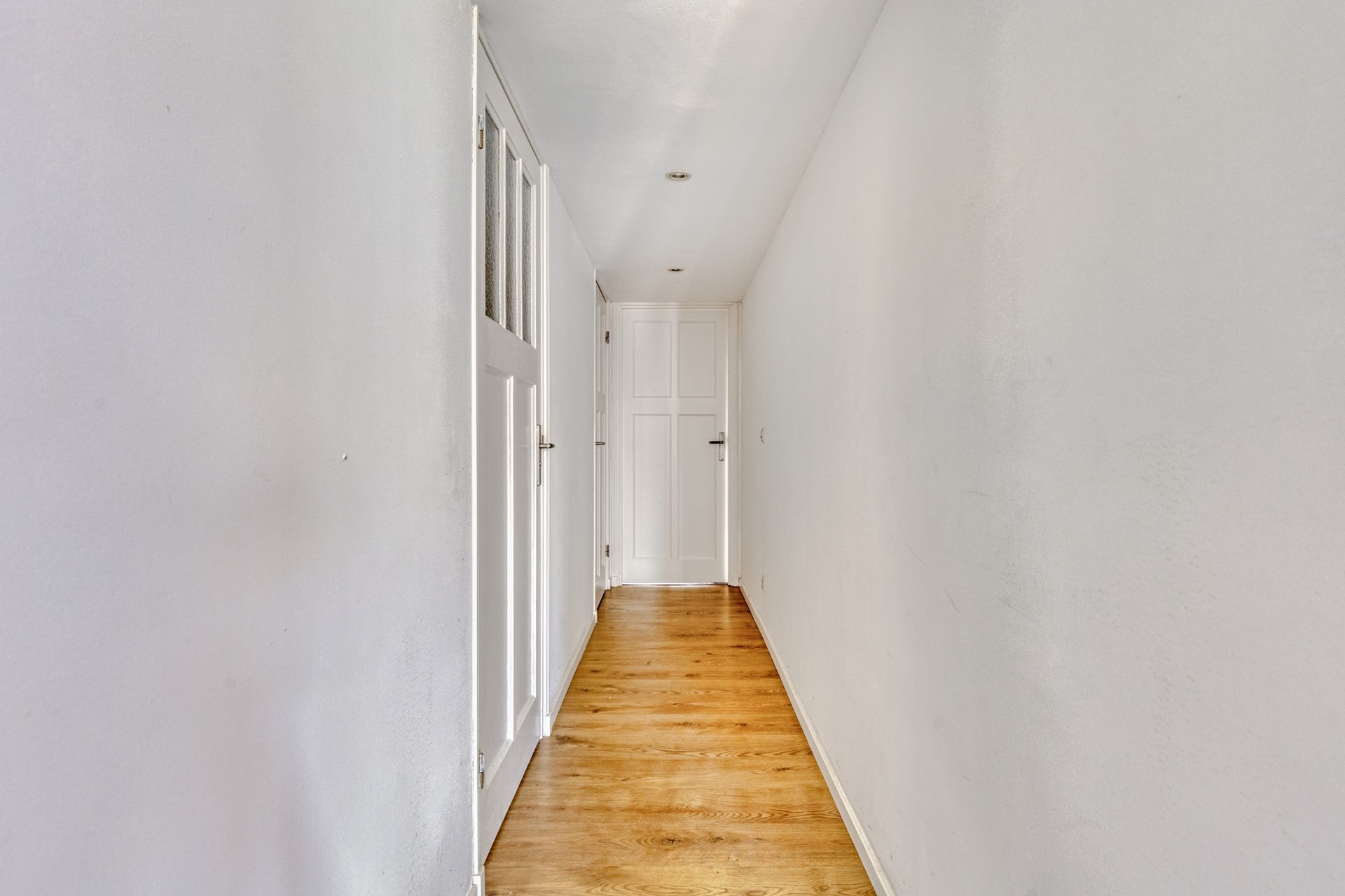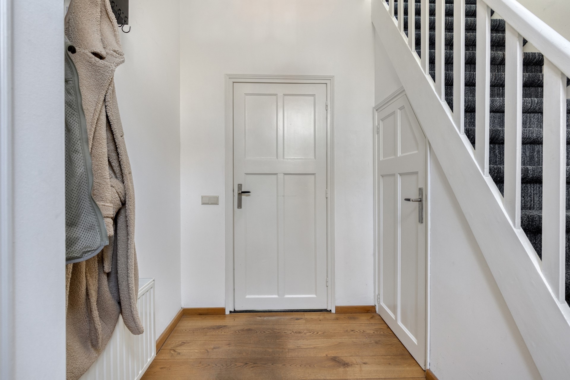Je betreedt de woning via de ruime hal met genoeg ruimte voor je garderobe, meterkast, trappenkast en trapopgang naar de eerste verdieping.