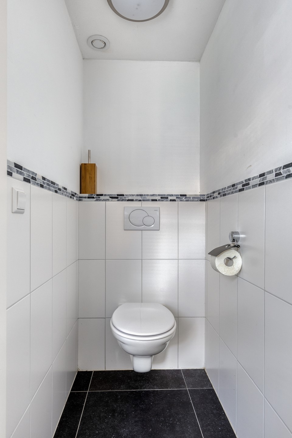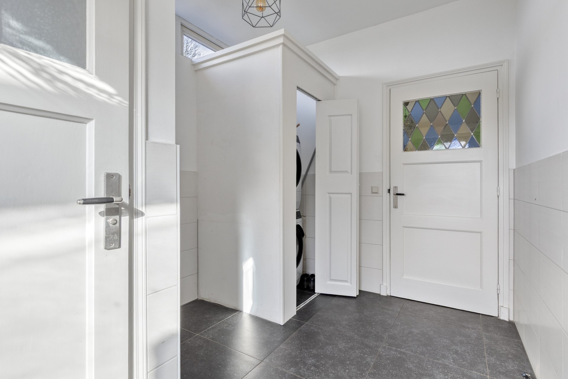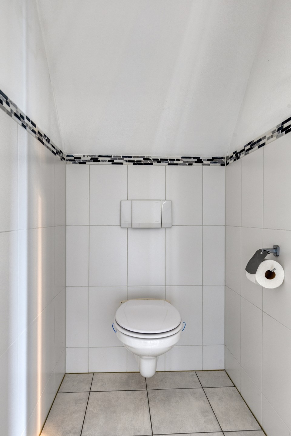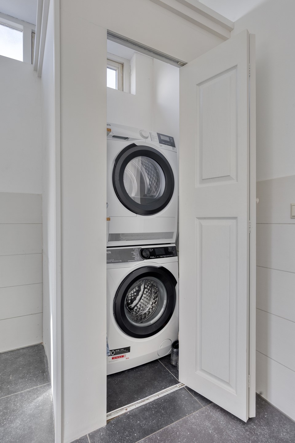 Vanuit de keuken en woonkamer bereik je de ruime bijkeuken aan de achterzijde van de woning met aansluitingen voor de wasmachine en droger . Tevens is hier ook een apart toilet aanwezig.