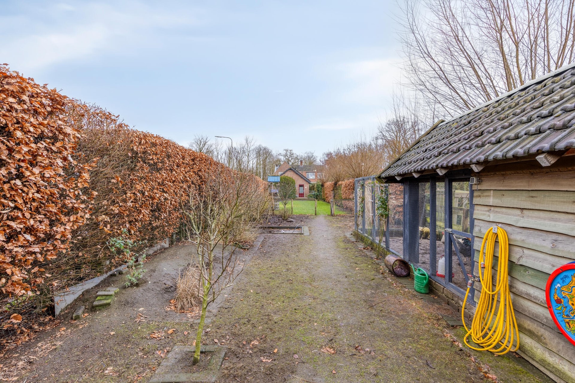 En dan gaat de tuin nóg verder! Je vindt hier een houten berging met overkapping, een kippenhok met uitloop en helemaal achterin een royaal perceel dat momenteel is ingericht als moestuin.