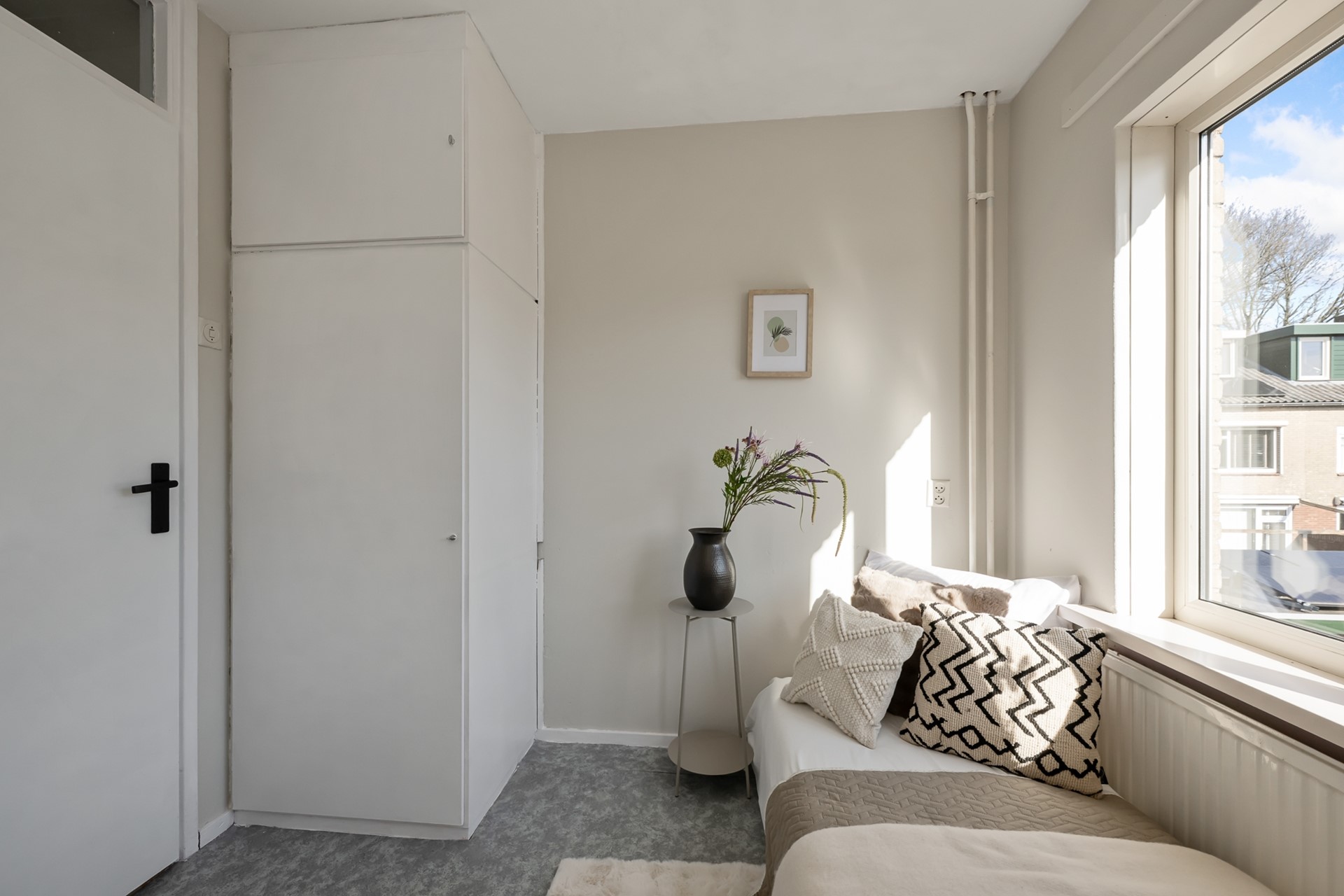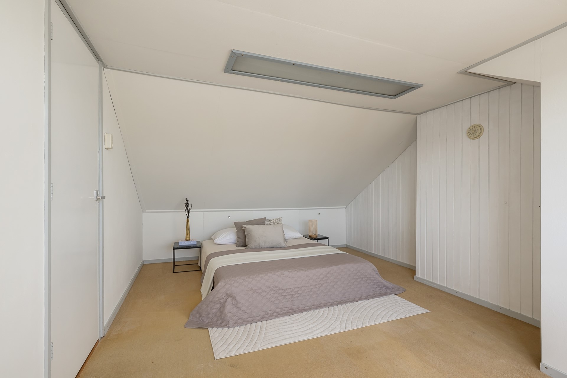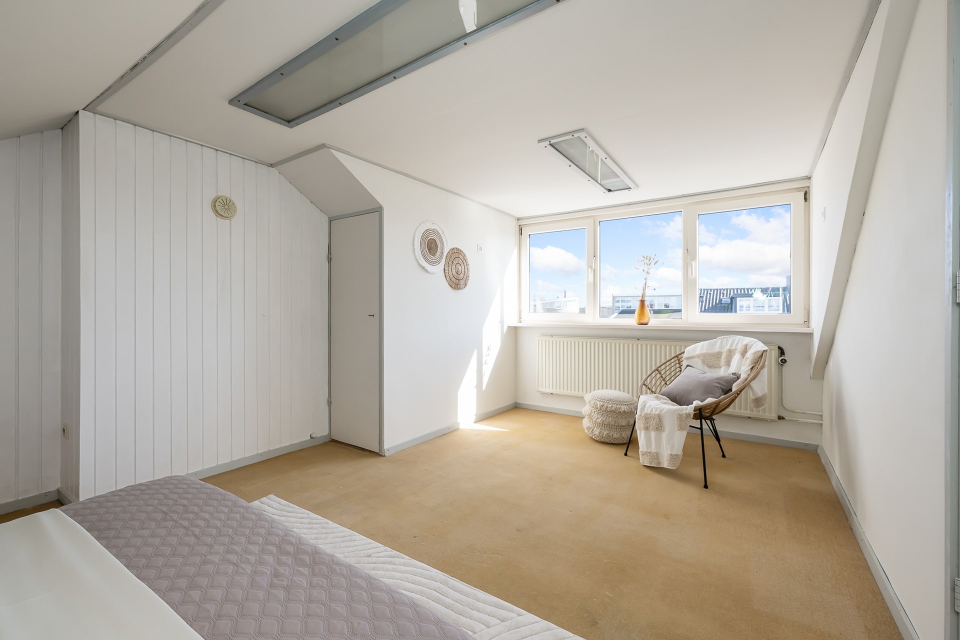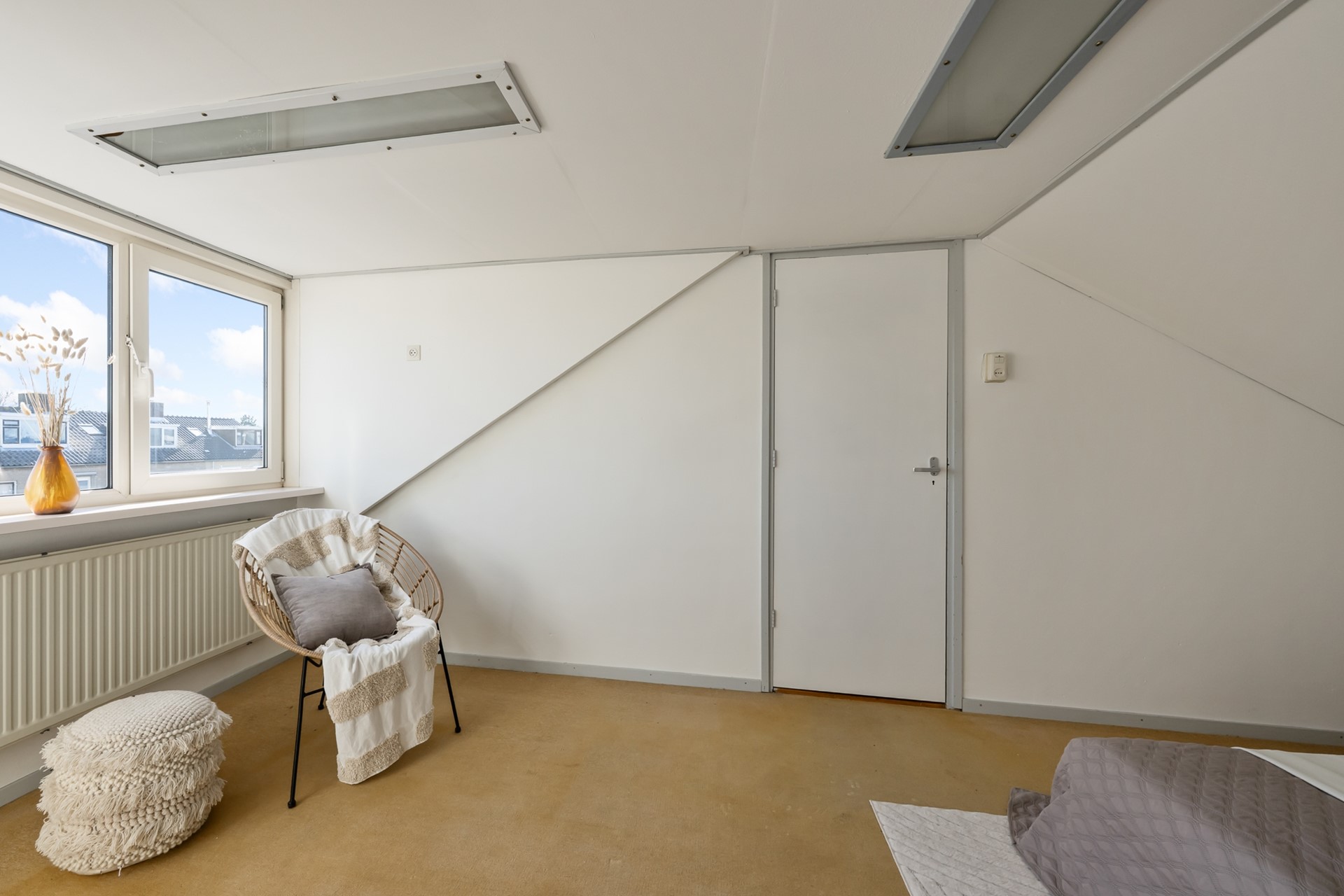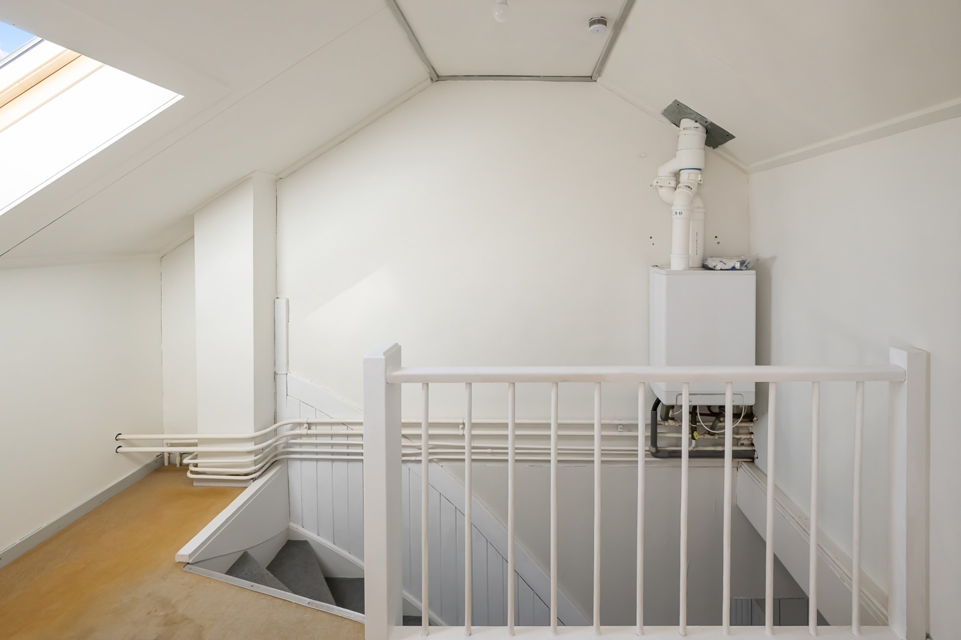 Via een vaste trap bereik je de voorzolder met opstelplaats voor de cv-ketel en bergruimte aan beide zijden. Daarnaast is er nog een slaapkamer met inbouwkast en dakkapel, wat zorgt voor extra ruimte en licht.