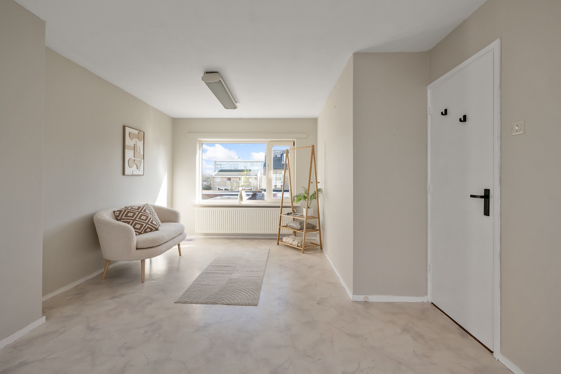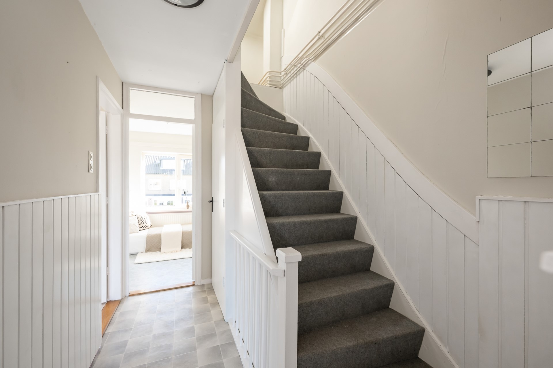 Via de entree kom je in de ruime hal met meterkast. De lichte woonkamer is een heerlijke leefruimte dankzij de grote ramen en het extra zijraam, als hoekwoning profiteer je hier van extra daglicht. Een prettige plek om thuis te komen!