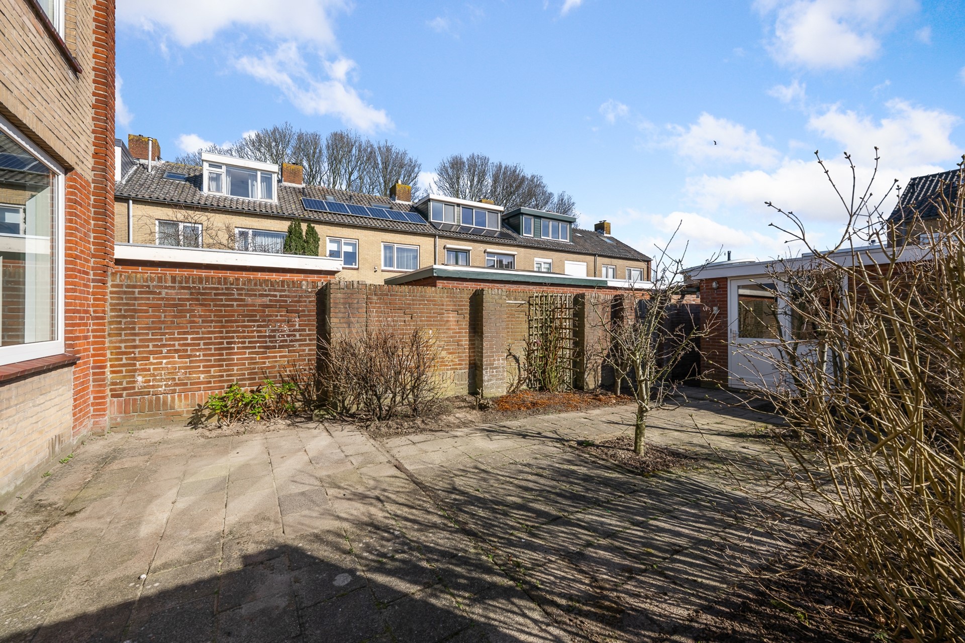 De achtertuin ligt gunstig op het zuidoosten, waardoor je hier al vroeg op de dag van de zon kunt genieten. De tuin beschikt over een stenen berging en een praktische achterom. Een fijne plek om een gezellige zithoek te creëren.
