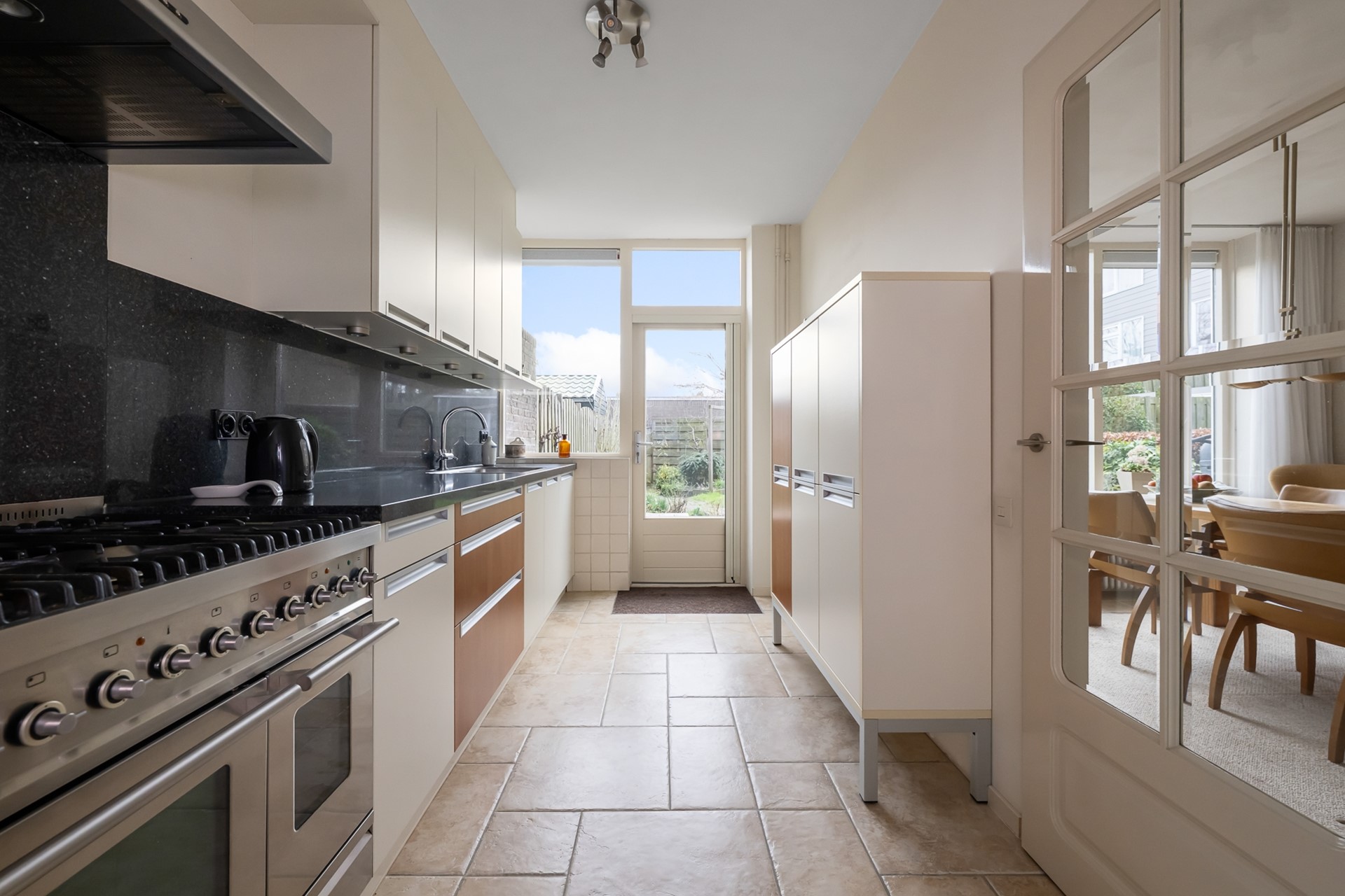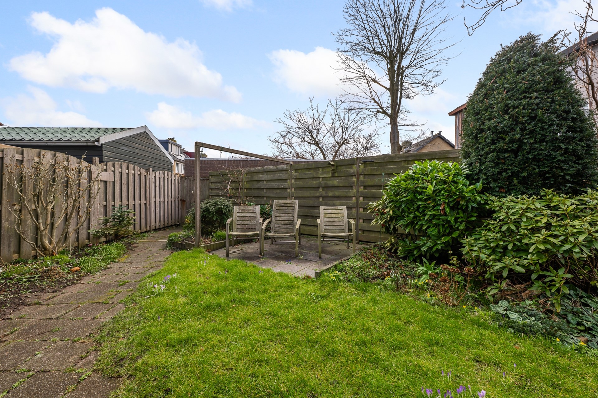De achtertuin is circa 10 meter diep en gelegen op het zuidoosten. Dankzij de speelse vorm zijn er meerdere zitplekken mogelijk. Of je nu ’s ochtends wilt genieten van een kop koffie in de zon of ’s avonds lang buiten wilt zitten, hier kan het allemaal.