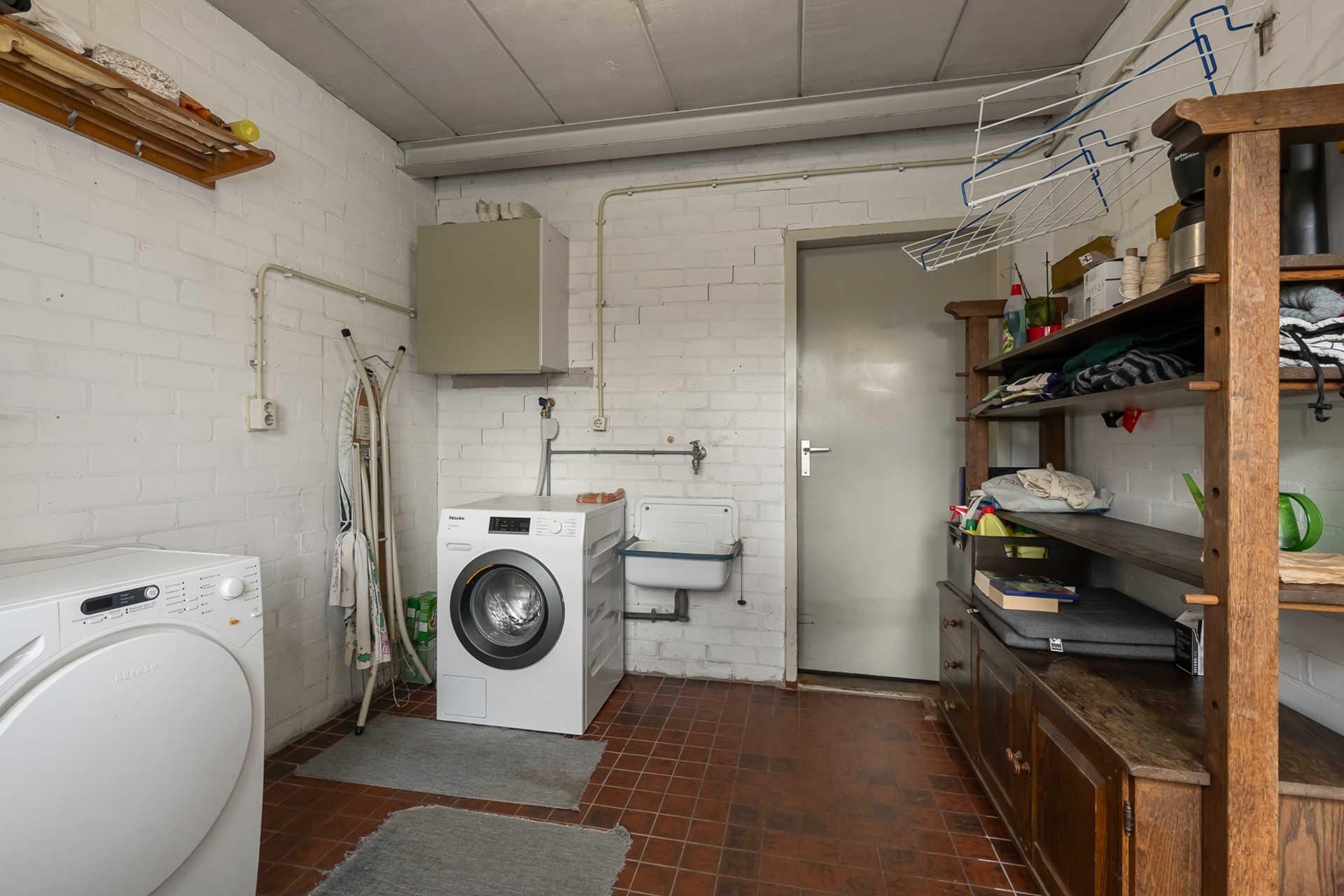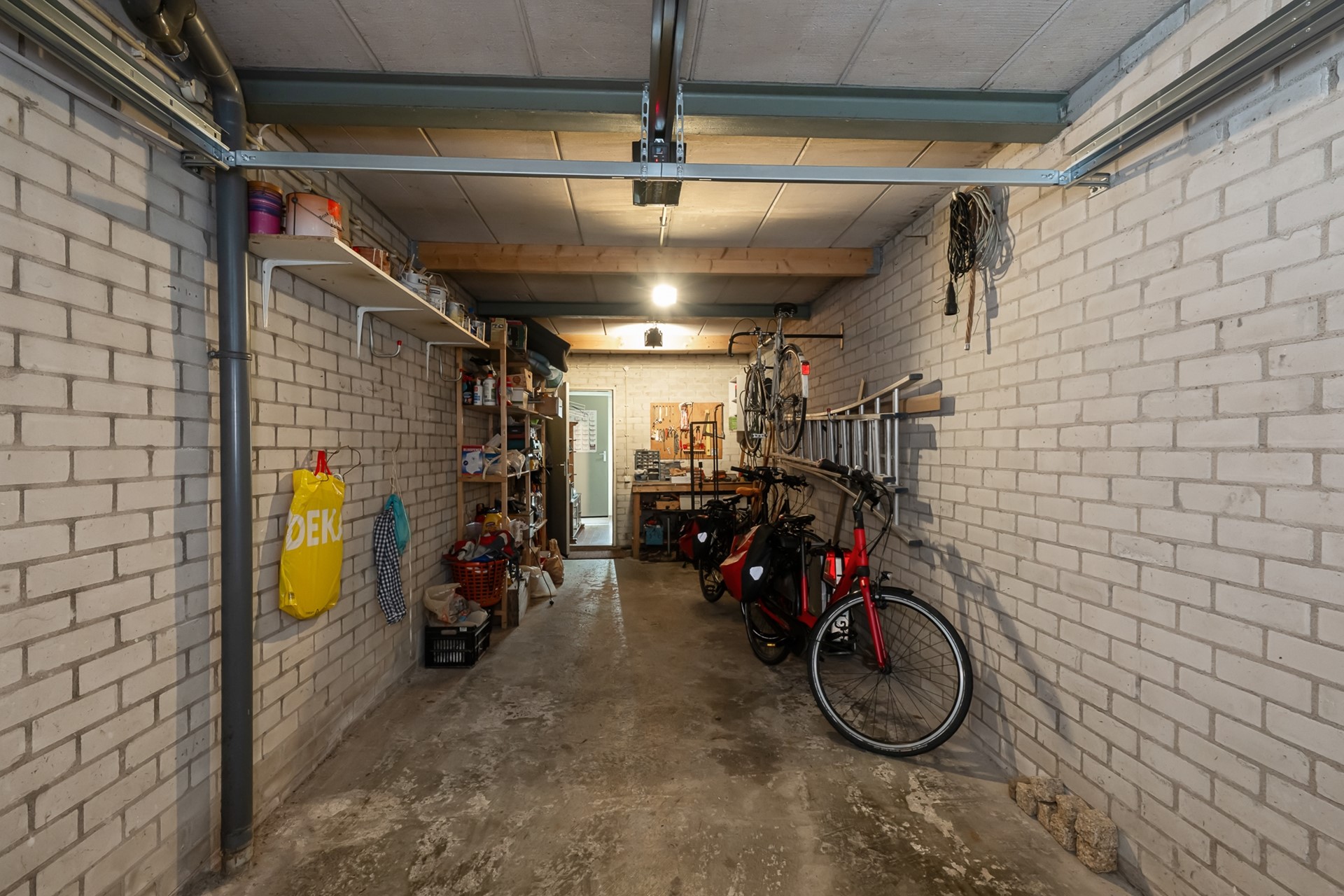 De inpandig bereikbare garage is een enorme plus: perfect voor de auto, fietsen, extra opslag of als hobbyruimte. Daarnaast is er een aparte wasruimte met opstelplaats voor de wasmachine, praktisch en netjes uit het zicht.