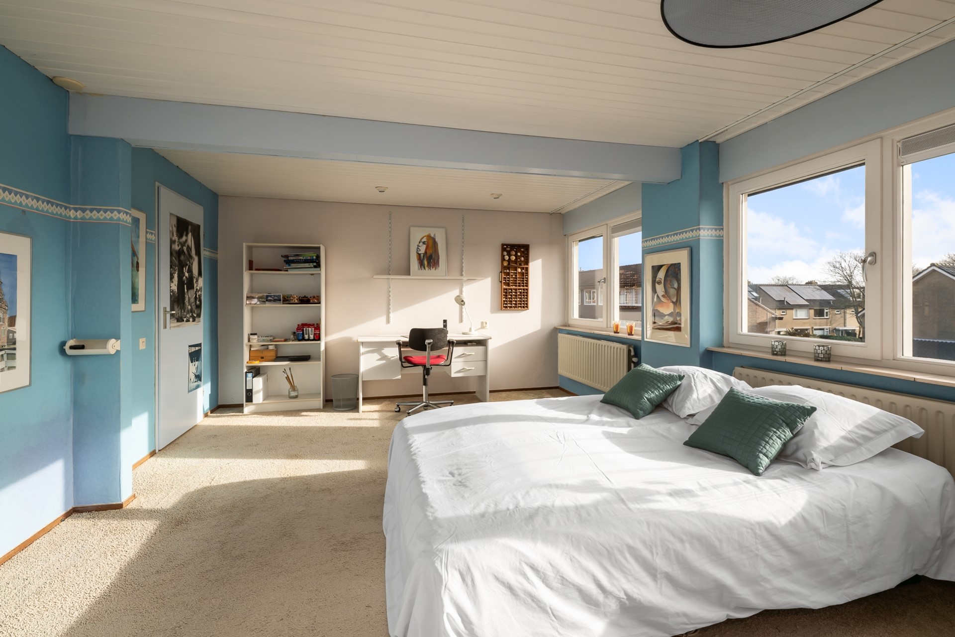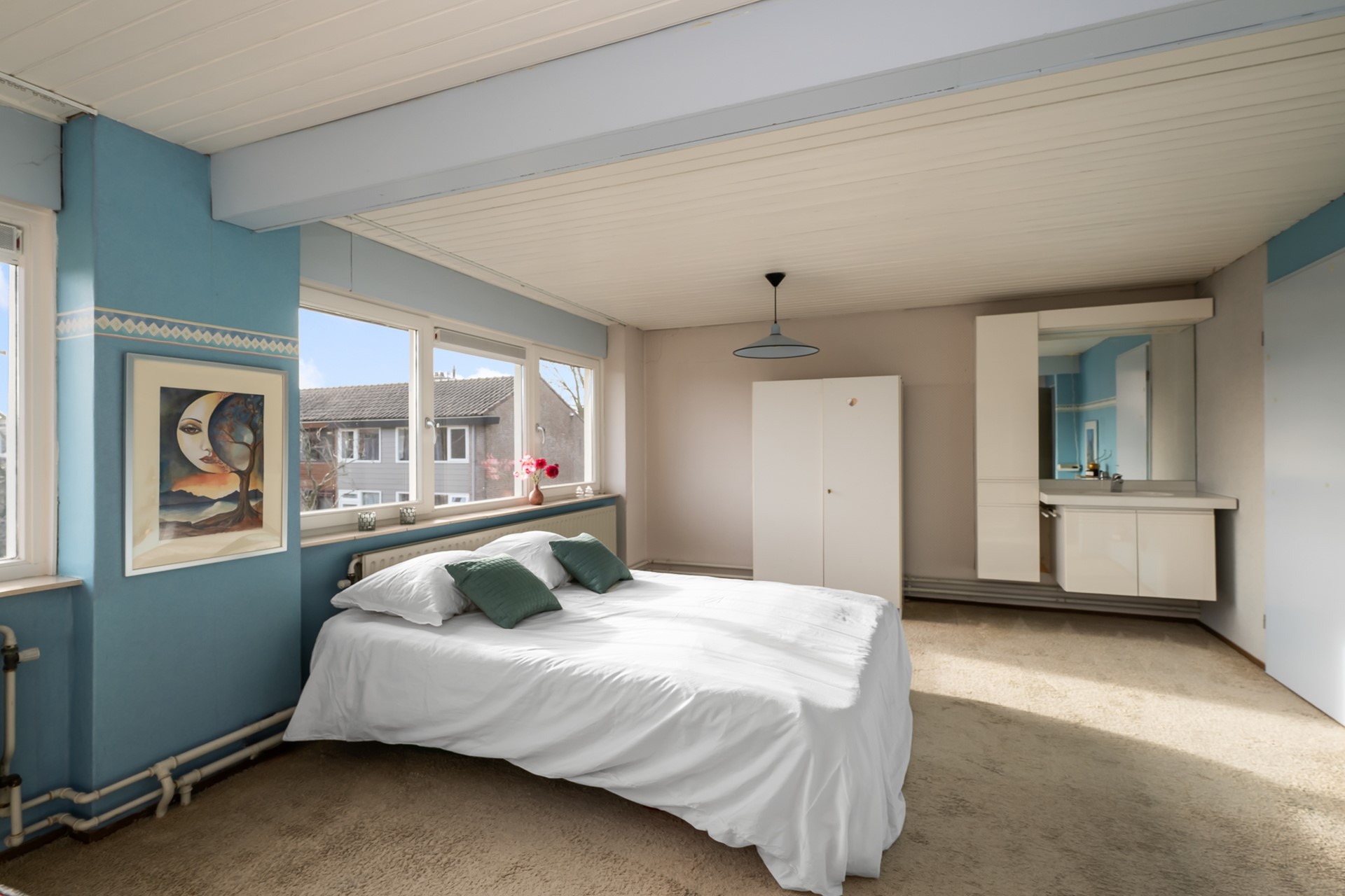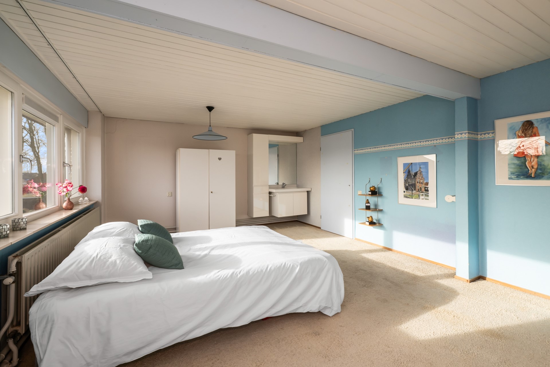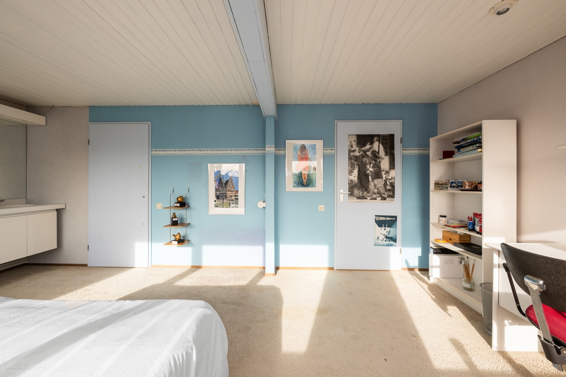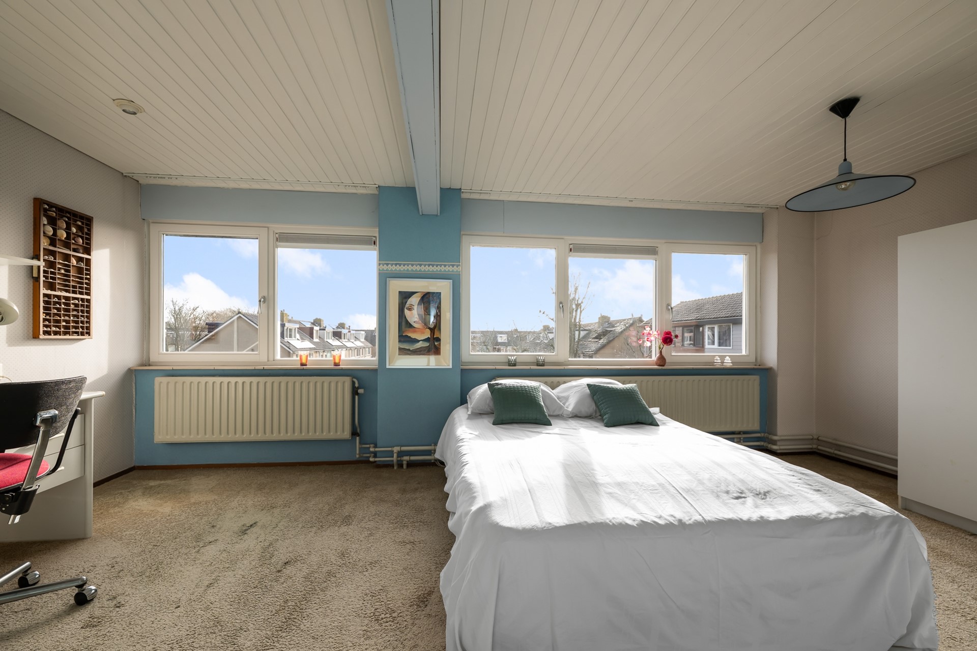 De tweede verdieping verrast met nog een royale slaapkamer met wastafelmeubel en een grote bergruimte met opstelling van de cv-ketel ( Nefit 2024 ) Een volwaardige extra verdieping die zich perfect leent als vierde slaapkamer, thuiskantoor of tienerkamer.