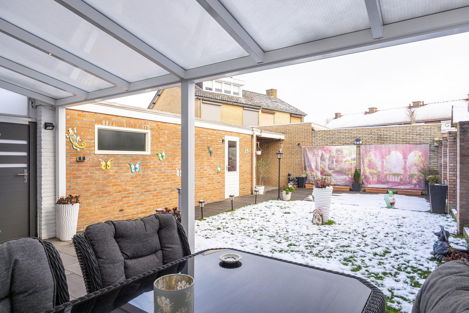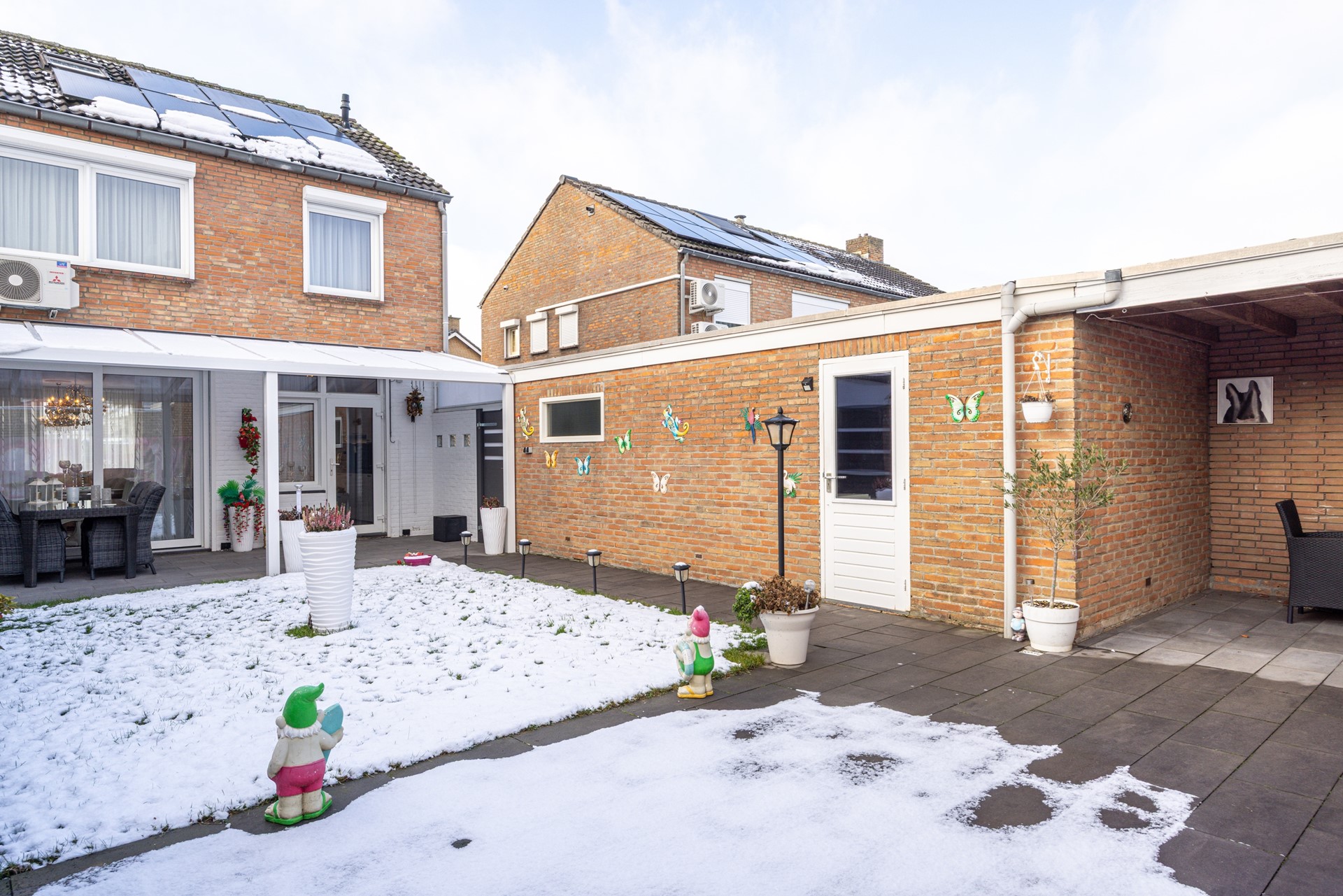De achtertuin is verzorgd aangelegd en biedt volop privacy. Er zijn meerdere terrassen aanwezig, waardoor je op elk moment van de dag kunt kiezen voor zon of schaduw. De tuin beschikt over twee overkappingen, waarvan de grootste is voorzien van verlichting. Via de tuin is er een achterom en directe toegang tot de garage. De garage biedt voldoende ruimte voor het stallen van een auto, fietsen en tuingereedschap. Daarnaast is de garage voorzien van water, elektra en een elektrische garagepoort.