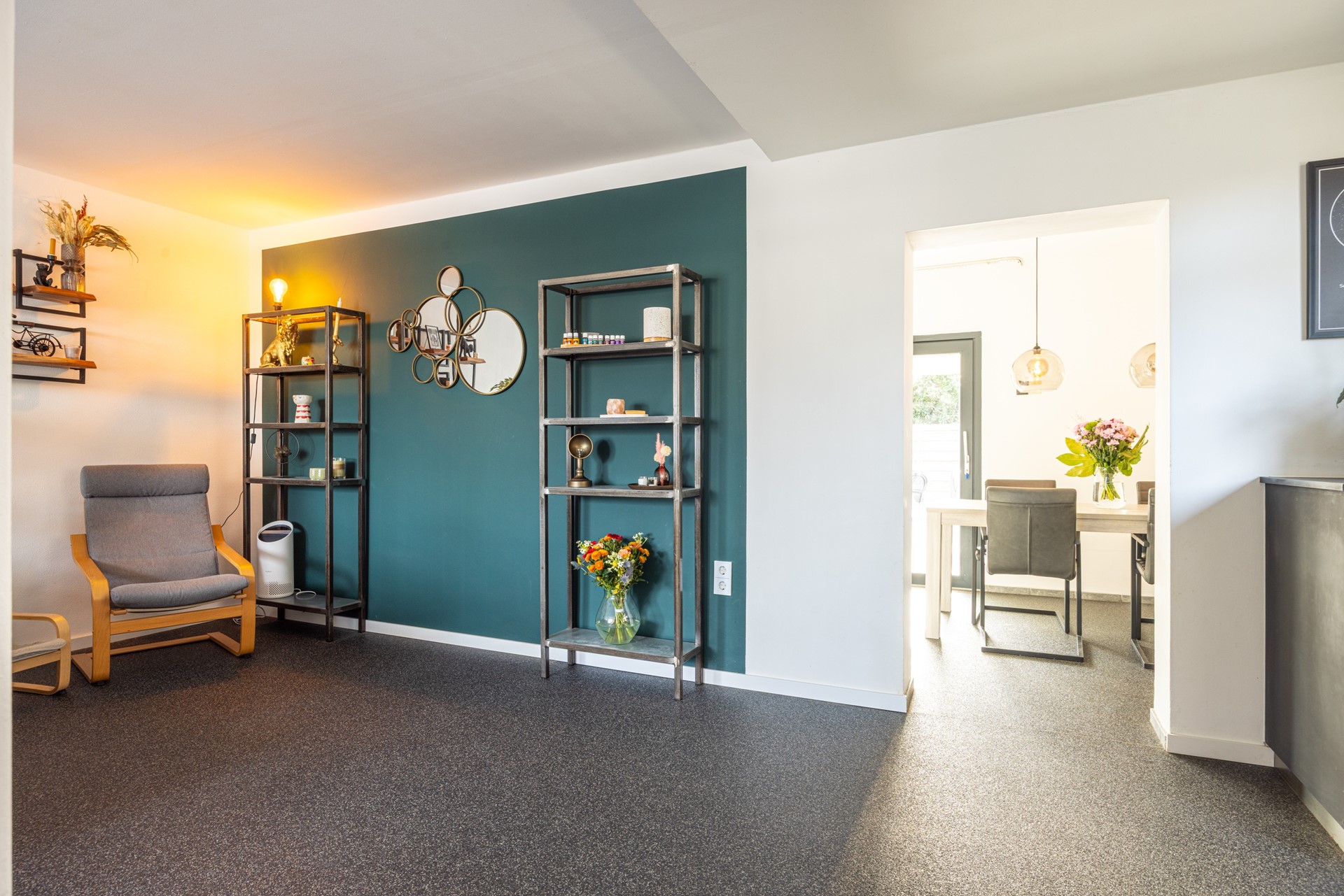 De grindvloer die doorloopt vanuit de hal naar de woonkamer en keuken zorgt voor een rustige basis en is eenvoudig in onderhoud.