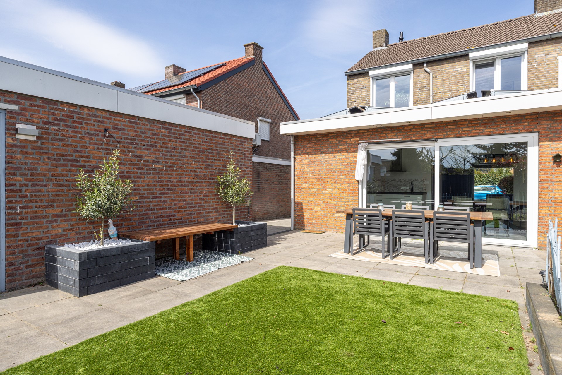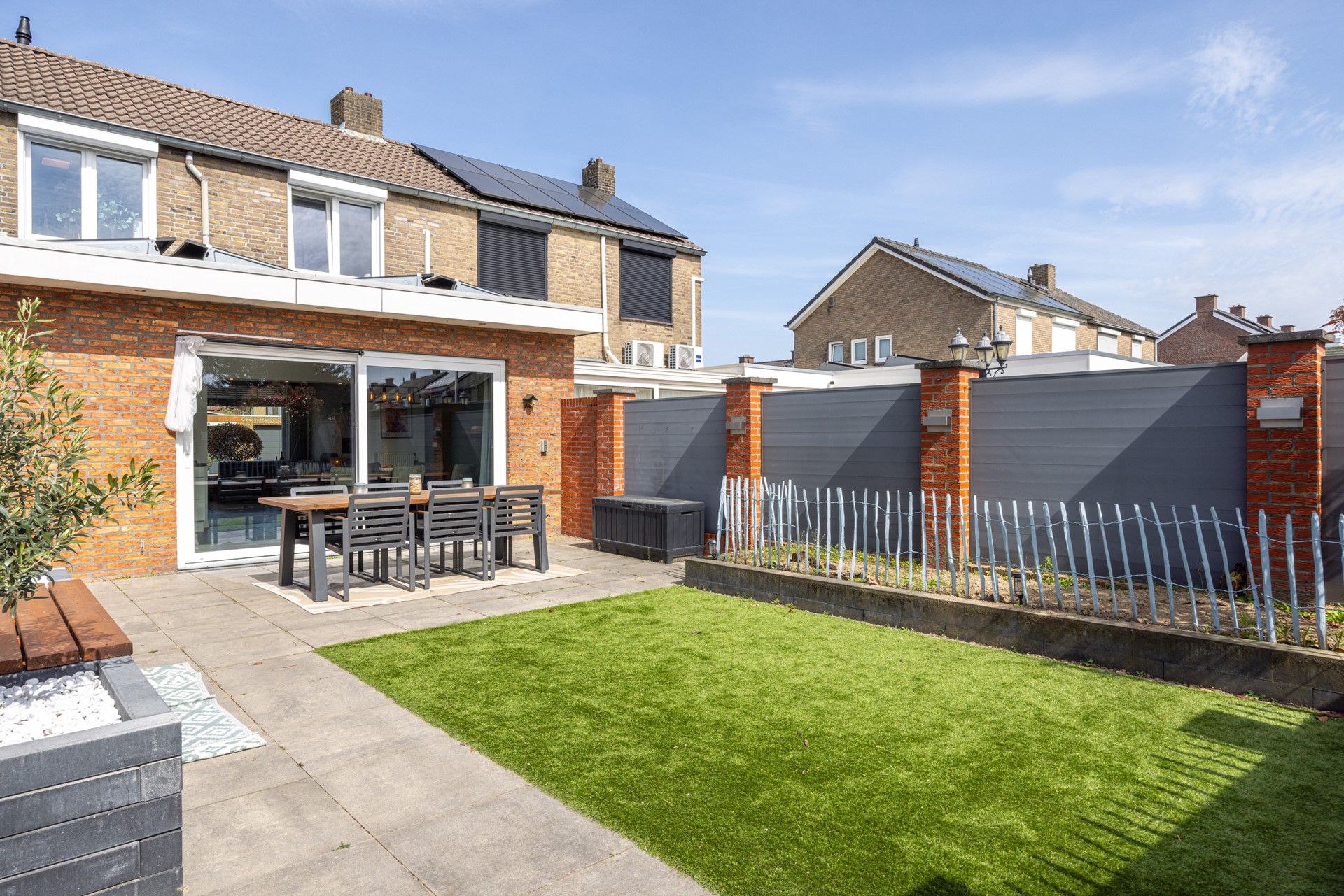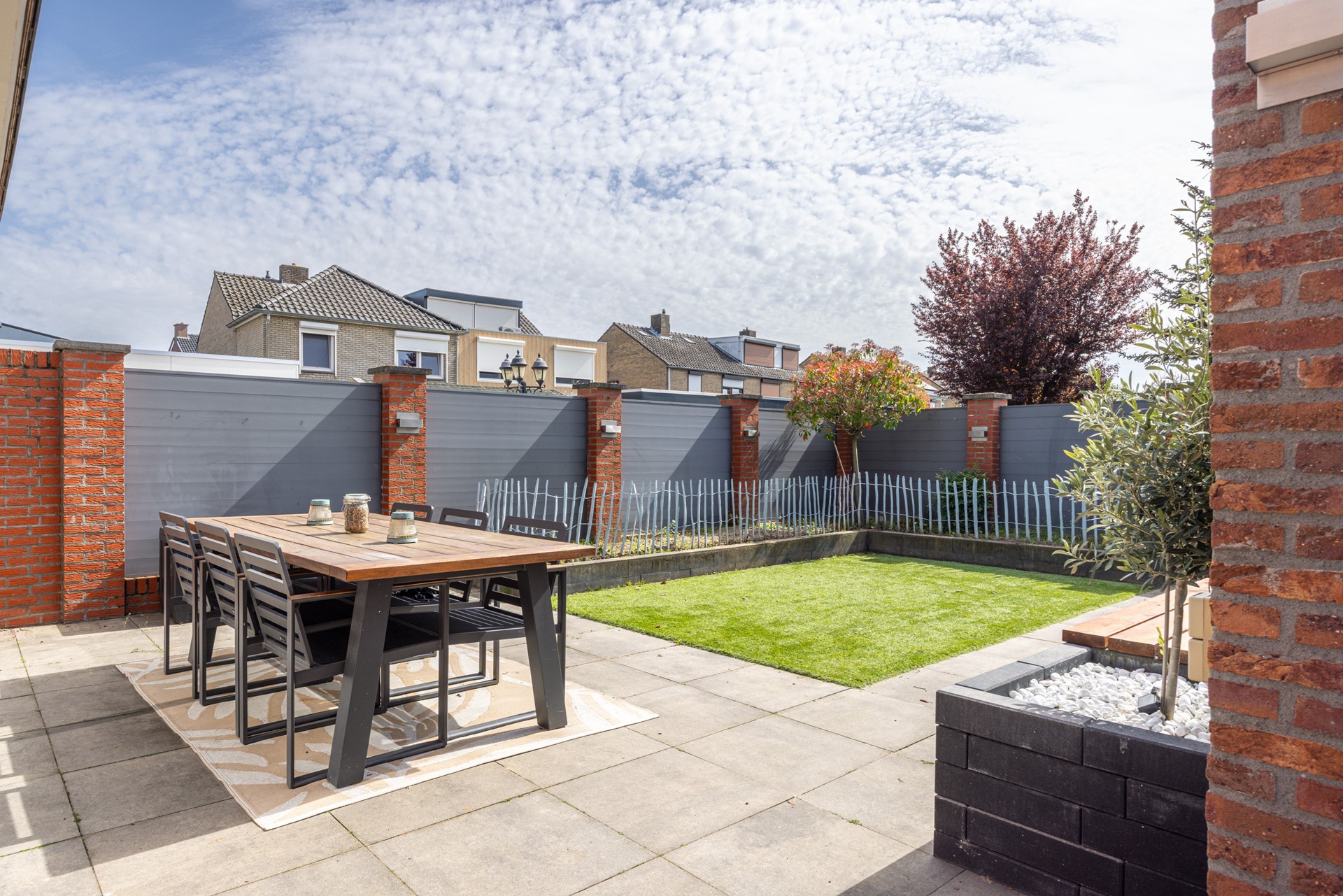 De achtertuin is verzorgd en onderhoudsvriendelijk aangelegd met een combinatie van bestrating en een stuk kunstgras. Hierdoor is er een prettige balans tussen groen en gebruiksgemak. Direct achter de woning is voldoende ruimte voor het creëren van een comfortabel zitgedeelte, terwijl er daarnaast nog plek is voor bijvoorbeeld een eettafel, loungehoek of speelruimte. De indeling maakt het eenvoudig om de tuin naar eigen wens in te richten.