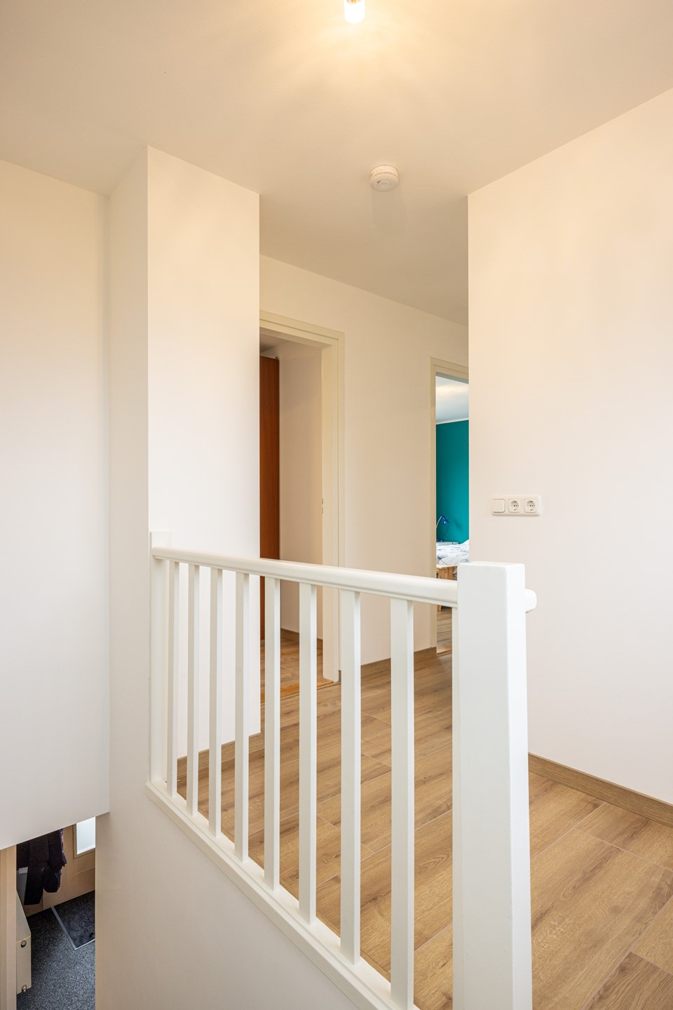 Via de vaste trap bereik je de eerste verdieping. De overloop is afgewerkt met een laminaatvloer en hoge plinten, wat zorgt voor een nette en verzorgde uitstraling. Hier is tevens een airconditioning geplaatst, die bijdraagt aan een aangenaam binnenklimaat tijdens warme dagen. De verdieping is grotendeels voorzien van kunststof kozijnen met dubbelglas en HR+ glas.