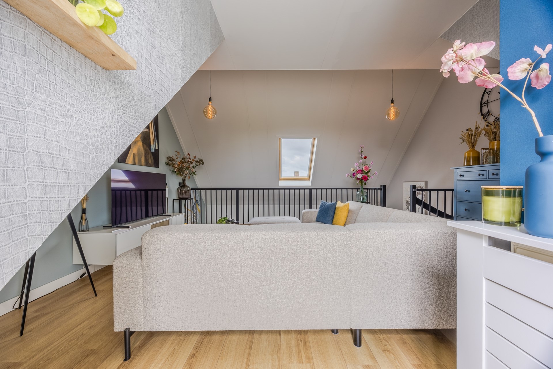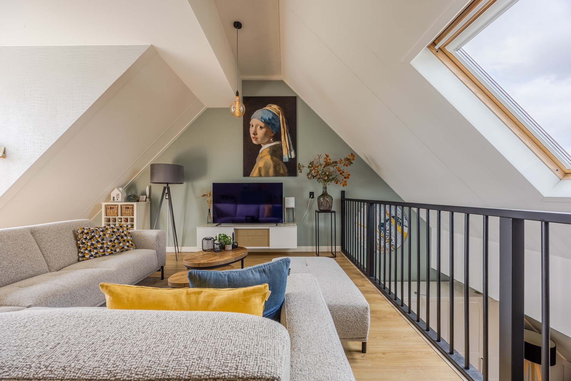 Een vaste trap in de woonkamer leidt naar de entresol, een multifunctionele ruimte van ca. 25 m². Ideaal als extra slaapkamer, werkplek of zitkamer. Vanuit hier is tevens het ruime dakterras van ca. 13 m² toegankelijk – een heerlijke plek om buiten te genieten.