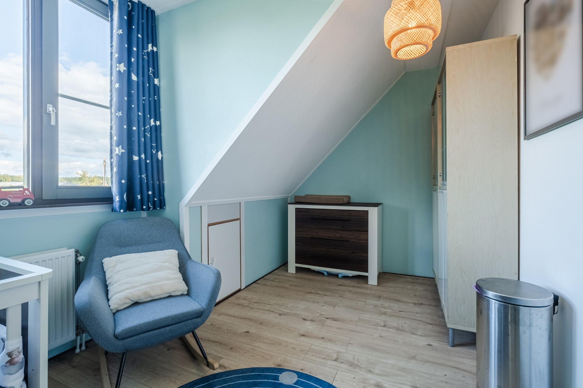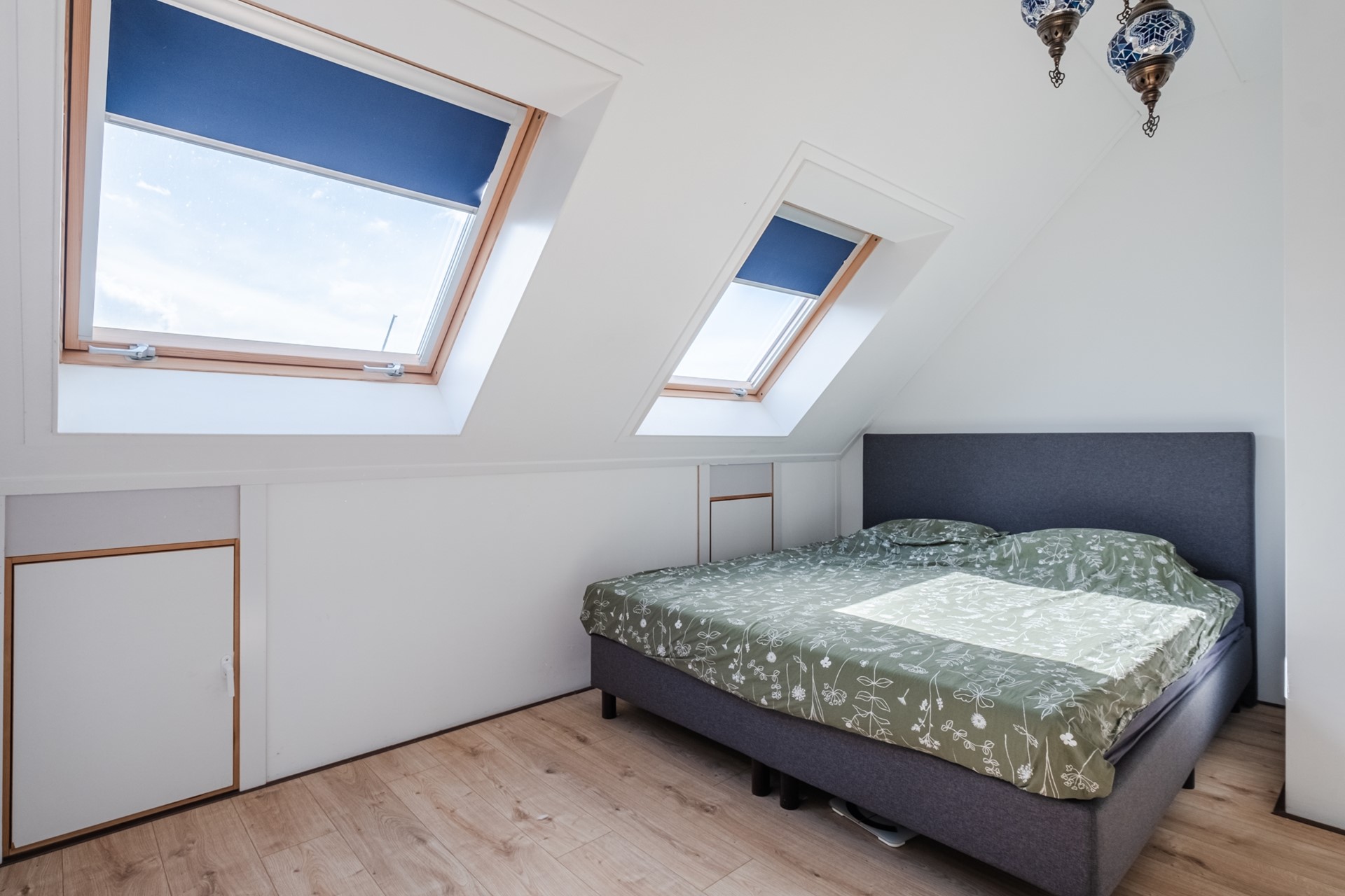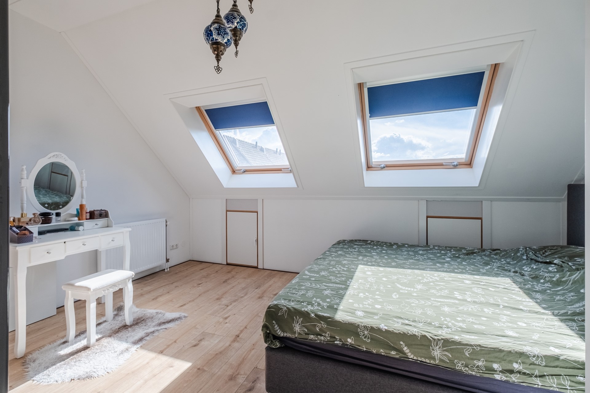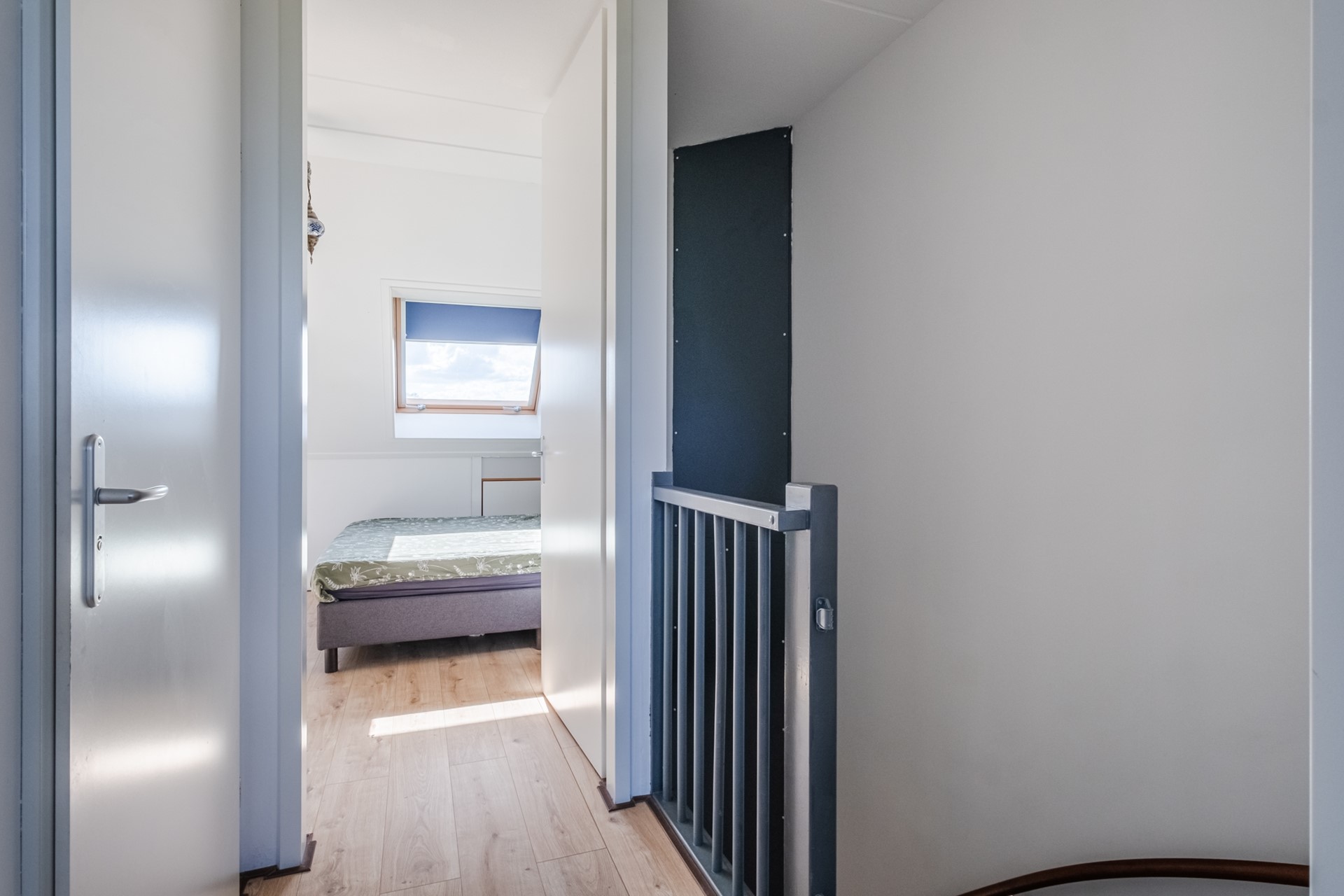 Via een vlizotrap bereik je de bergvliering, ideaal voor het opslaan van seizoensspullen en extra huisraad.