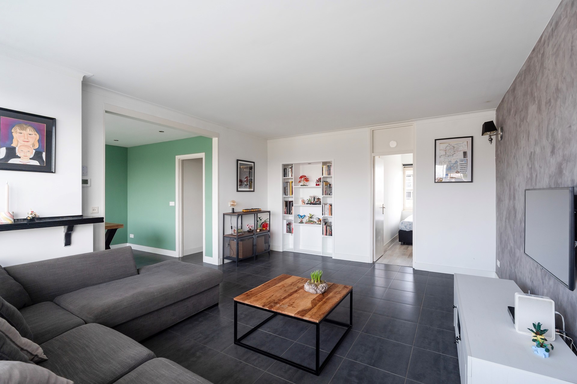 De woonkamer is met recht het hart van de woning te noemen. Dankzij de slimme toevoeging van een extra (slaap)kamer is een bijzonder royale leefruimte ontstaan. Of u nu droomt van een riante loungehoek of een lange eettafel voor uitgebreide diners met vrienden: hier kan het allemaal. De nette plavuizenvloer met comfortabele vloerverwarming loopt naadloos door vanuit de hal, wat zorgt voor een rustige en luxe uitstraling.