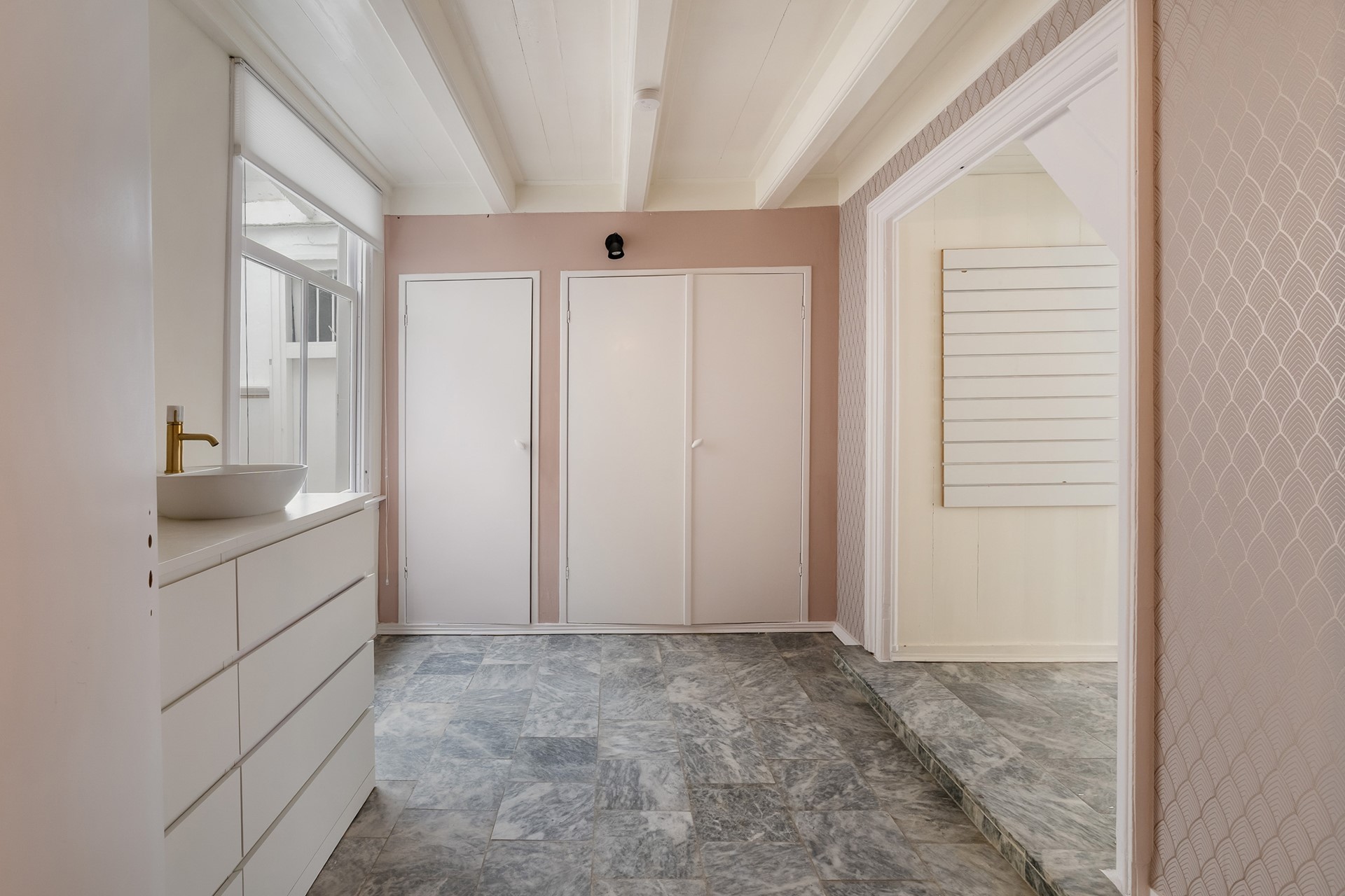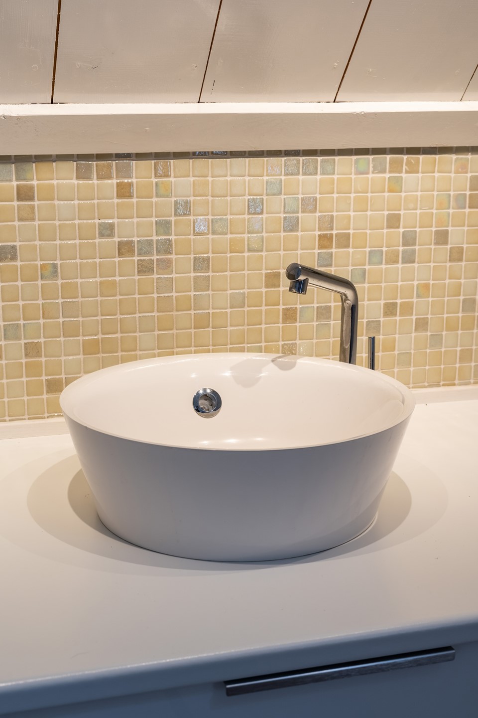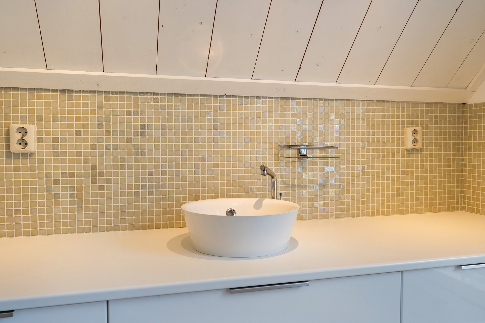 De eigentijdse keuken sluit naadloos aan bij het nostalgische karakter van dit pand. Door de aanwezigheid van een ingebouwde koelkast, vaatwasser en een close-in boiler, kan je zelf beslissen of je een gaskookplaat of inductie wil toevoegen aan de keuken.