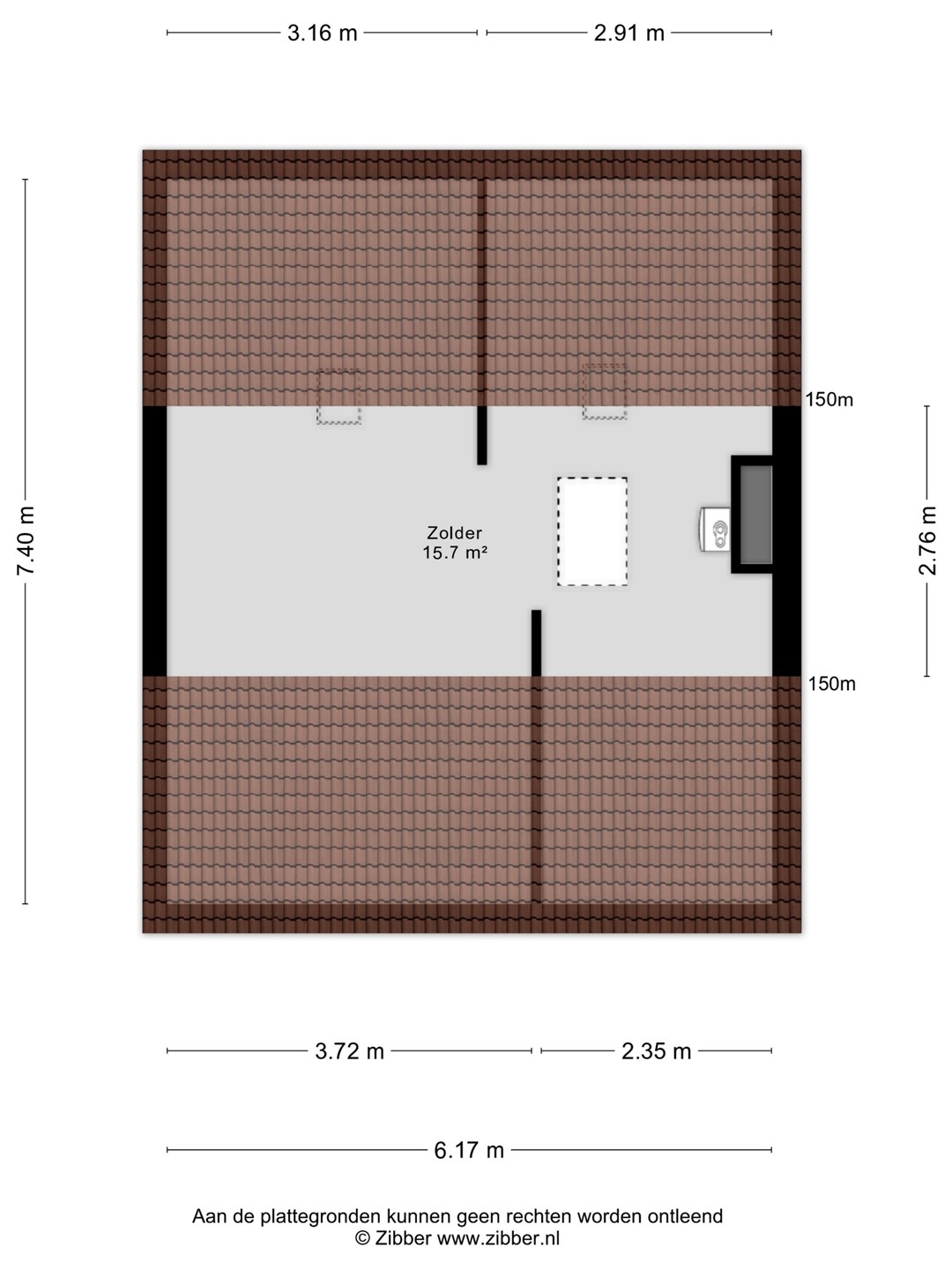 Middels een vlizotrap is de zolder bereikbaar. Hier bevindt zich de c.v.-opstelling (Vaillant HR combiketel 2024).