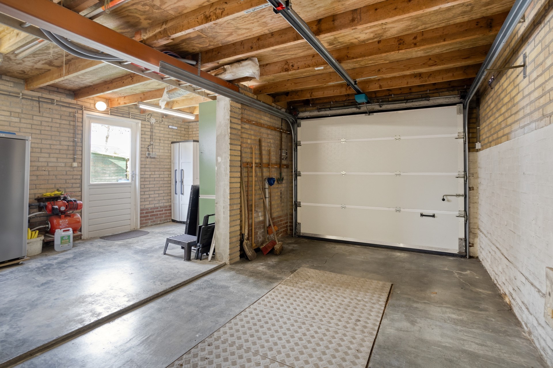 De woning is gelegen op een fijn hoekperceel met aan de achterzijde de oprit met toegang tot de garage. De ruime garage (ca. 30 m²) is voorzien van een elektrische poort, een smeerput, een grondwaterpomp en hier bevindt zich ook de witgoedaansluiting. De berging (ca. 10 m²) naast de woning biedt voldoende plek voor opslag van tuinspullen.
