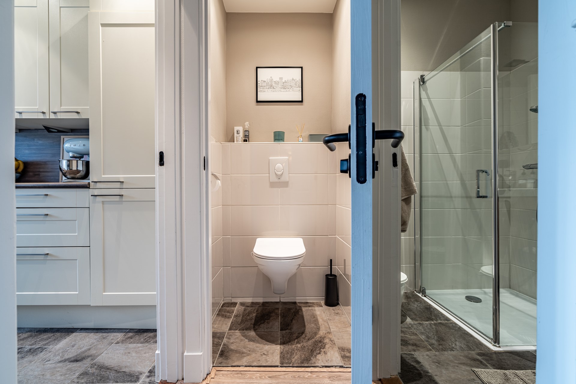 De keuken is praktisch ingedeeld en uitgerust met een koel-vriescombinatie, vaatwasser, 4-pits gasfornuis en een oven. De badkamer verkeert in een goede staat en beschikt over een ruime wastafel en een inloopdouche. Daarnaast is er een separaat toilet aanwezig. Verder is er een ruime inloopkast aanwezig die toegankelijk is vanuit de hal.