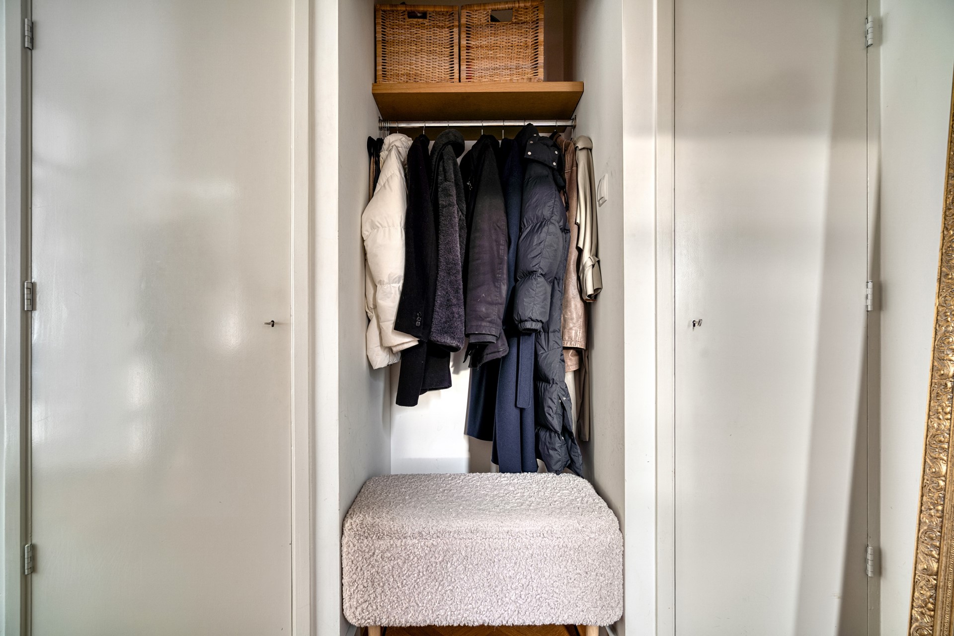 The apartment also includes a very spacious double storage room with a total surface area of 14.98 m², divided into two separate sections. The storage room is ideal for storing multiple bicycles and offers ample space for laundry appliances and for neatly organizing tools, sports equipment, and seasonal items.