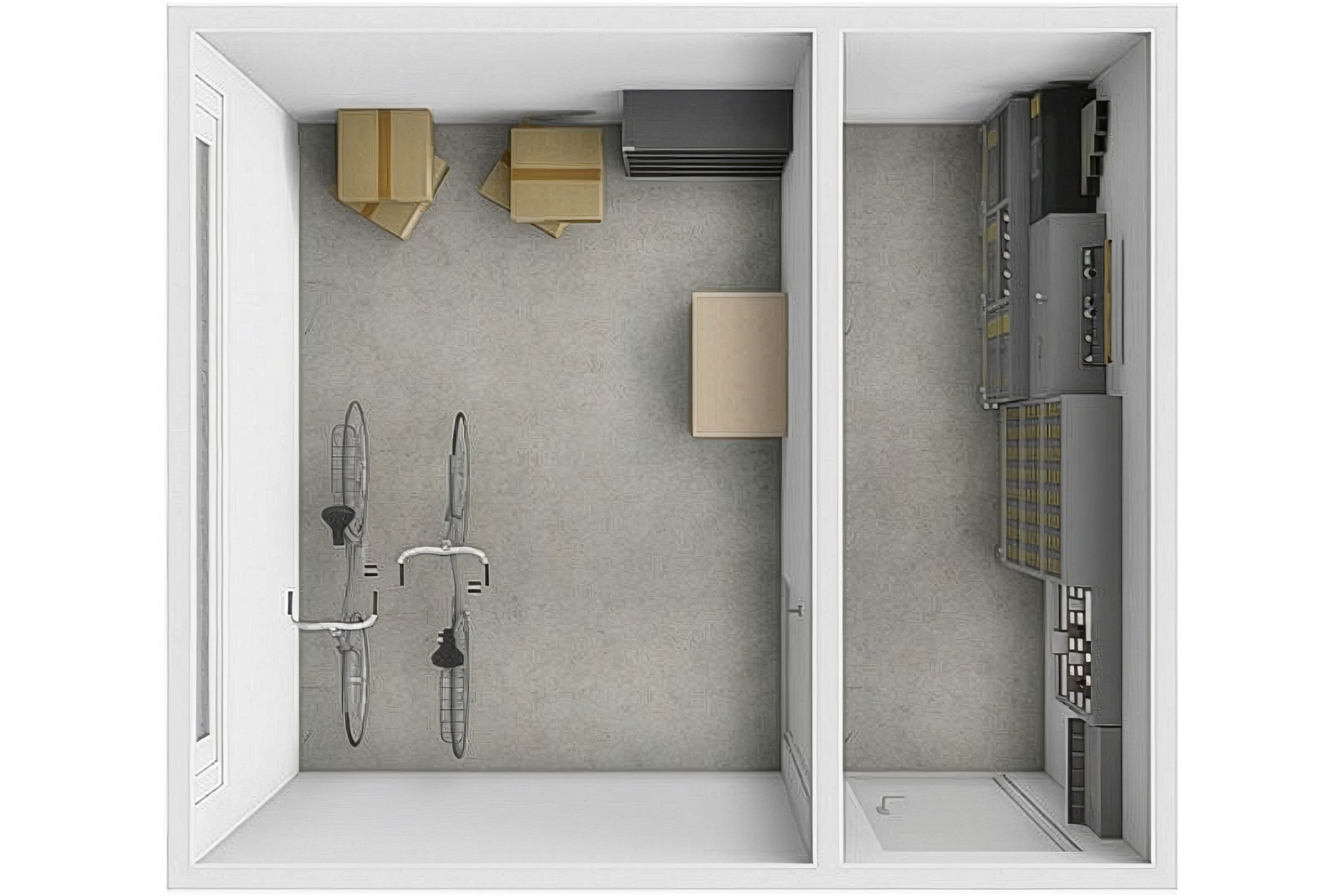 Bij het appartement hoort een zeer ruime dubbele berging met een totale oppervlakte van 14,98 m², verdeeld over twee separate delen. De berging is ideaal voor het stallen van meerdere fietsen en biedt daarnaast volop ruimte voor de was en het overzichtelijk opbergen van gereedschap, sportspullen en seizoensartikelen.