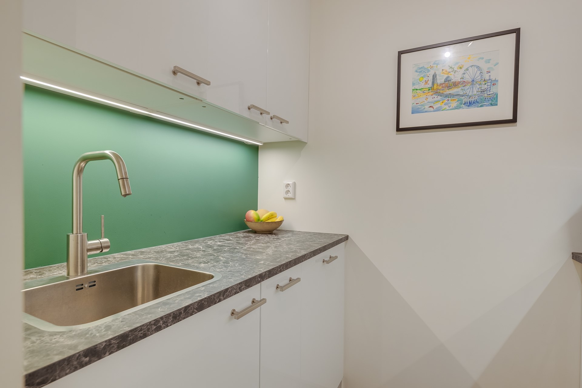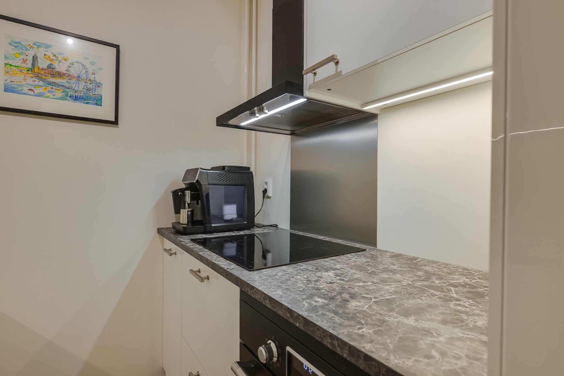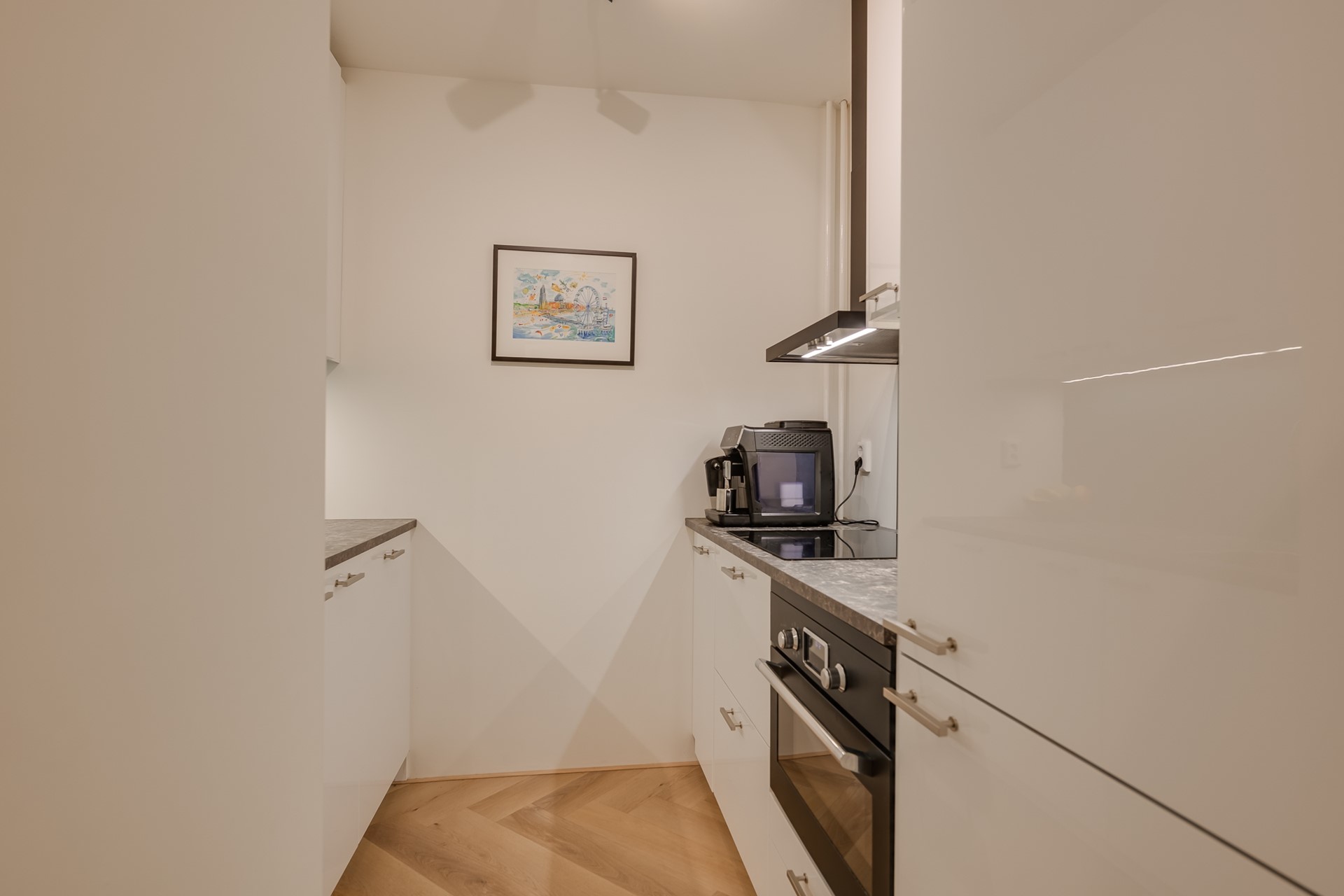De keuken is een verhaal op zich. Strak ingebouwd, voorzien van alle gemakken en slim ingedeeld. Of je nu een snelle pasta maakt of uitgebreid staat te kokkerellen voor vrienden, hier voelt koken nooit als een verplichting.