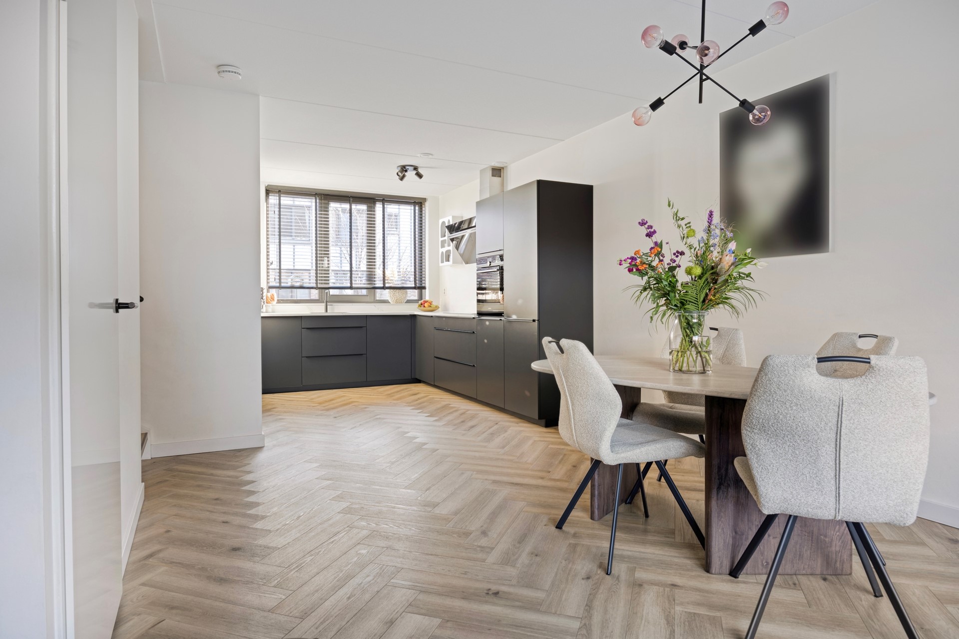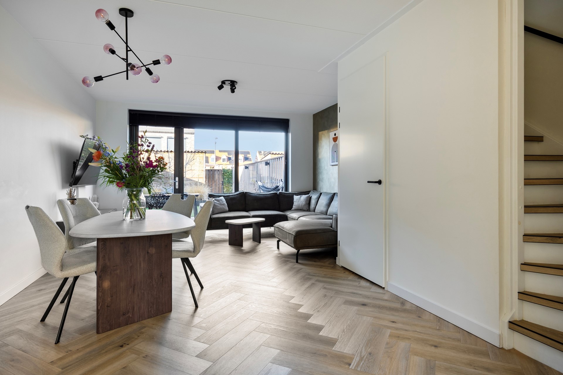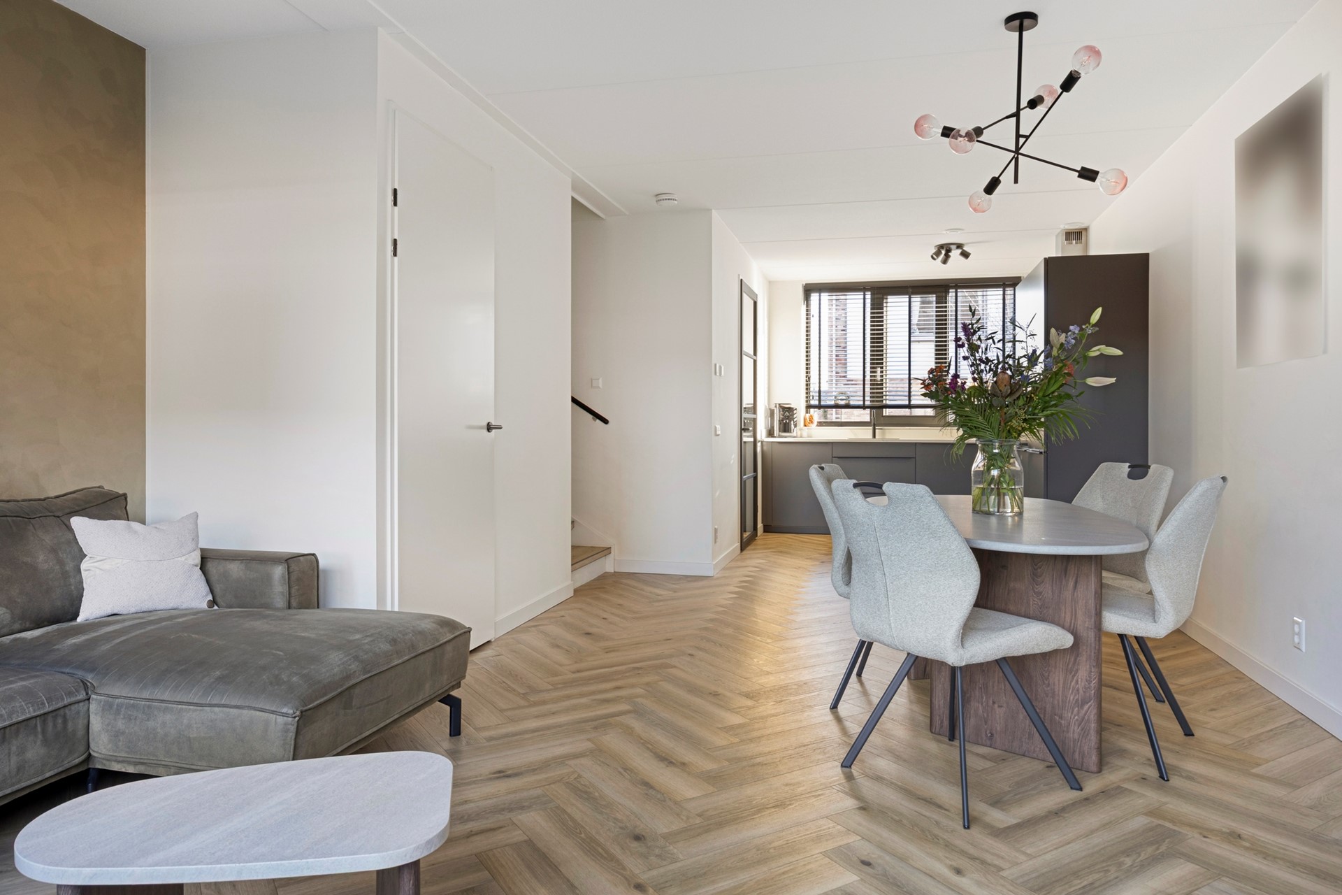 De lichtrijke woonkamer is ruim te noemen De strakke afwerking voelt ruim en rustig.