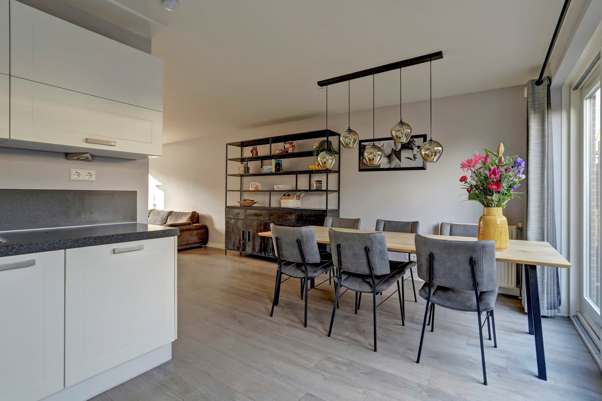 Je komt binnen in de hal met de meterkast en toilet. De woonkamer ligt aan de voorzijde en is licht en sfeervol en voorzien van vloerverwarming – heerlijk comfortabel in de koudere maanden. Aan de achterzijde bevindt zich de stijlvolle woonkeuken met volop ruimte voor een grote eettafel. De keuken is compleet uitgerust met diverse inbouwapparatuur, waaronder een inductiekookplaat, afzuigkap, koelkast met vriesvakje, vaatwasser, combi-oven/magnetron en een ingebouwd koffiezetapparaat.