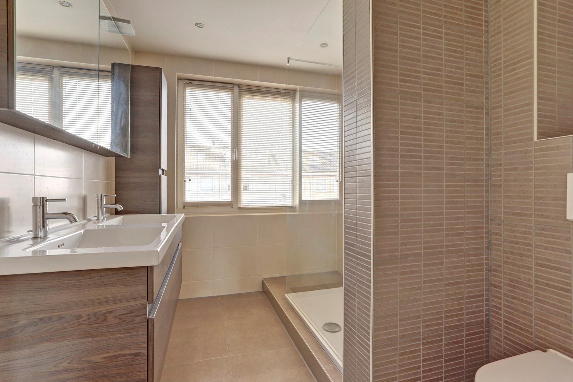 Op deze verdieping zijn drie nette slaapkamers, allemaal voorzien van rolgordijnen. De moderne badkamer is ingericht met een ruime inloopdouche, een dubbel wastafelmeubel en een hangend toilet.