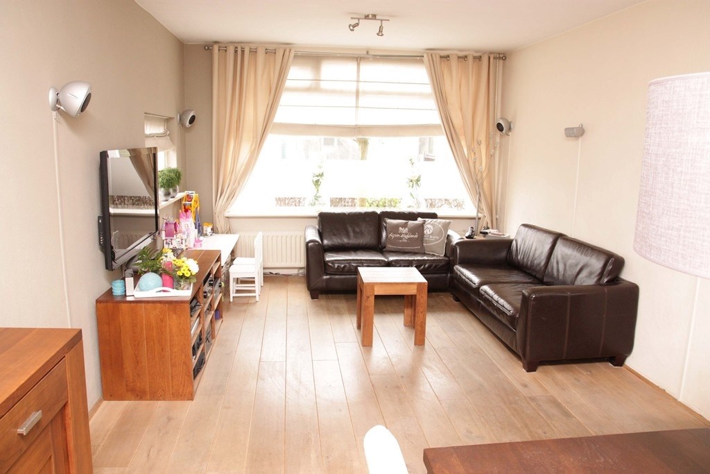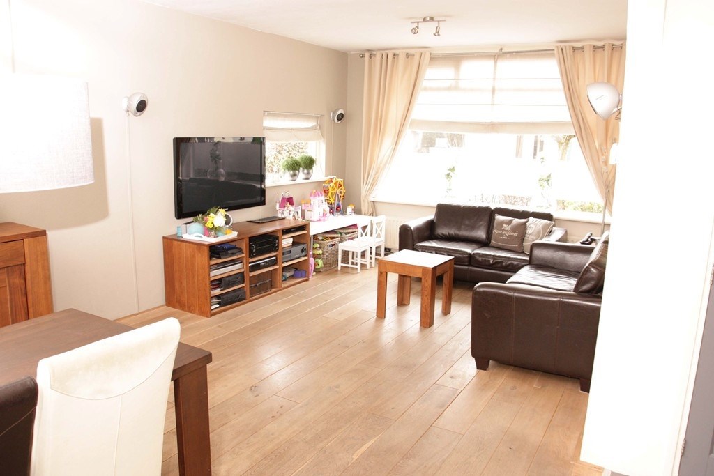De sfeervolle woonkamer,heeft een "warme", massieve eikendelen vloer, een groot voor- en achtergevelraam en een speels zijgevelraam. Door deze goed geplaatste raampartijen komt er veel natuurlijk daglicht binnen. Dit geldt overigens voor de gehele woning. De wanden zijn overwegend voorzien van fijn stucwerk.