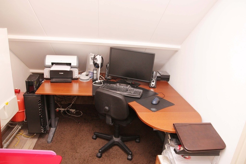 De voorzolder heeft een klein uitzetraam en is geschikt voor bijvoorbeeld een extra werk-/computerhoek. Via de overloop is de multifunctionele 4e slaapkamer te bereiken. Deze slaapkamer heeft een speels zijgevelraam, extra bergruimte in de knieschotten (zowel aan de voor- alsmede aan de achterzijde) en de wanden zijn eveneens voorzien van schuurwerk.