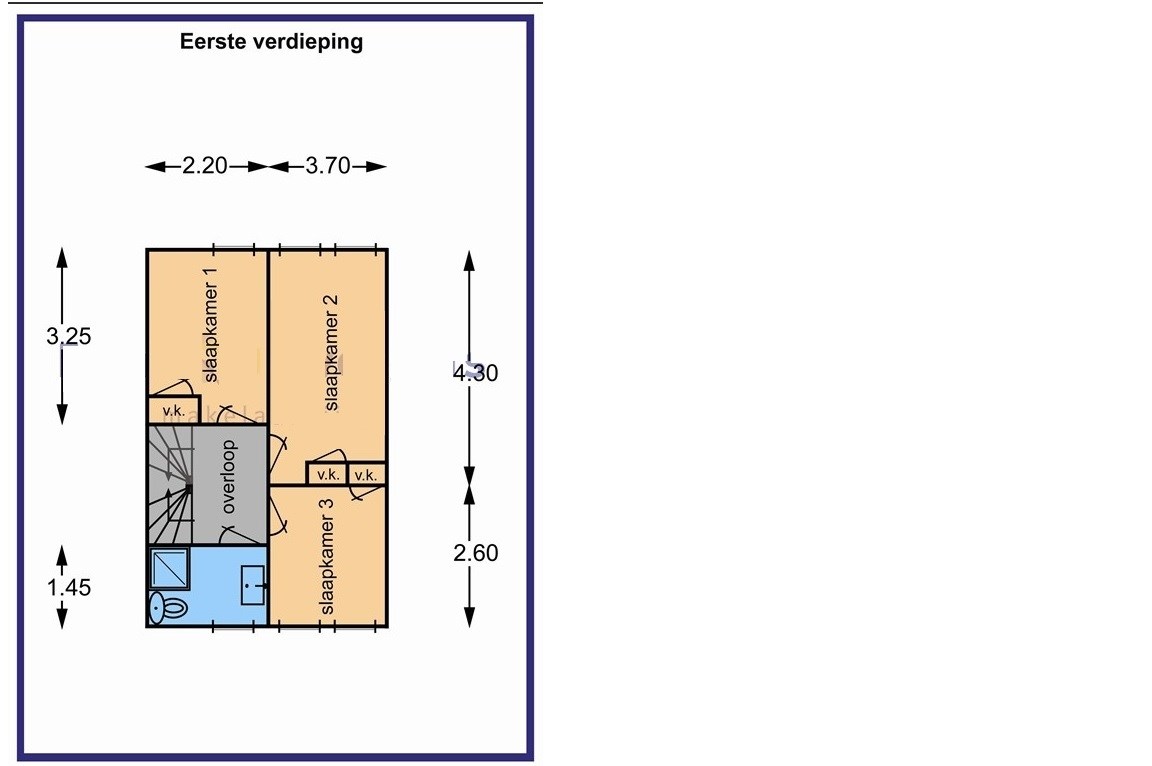 De afmetingen zijn van drie volwaardige slaapkamers. Alle slaapkamers hebben een vaste kast. Ook deze verdieping heeft een betonvloer met een onderhoudsvriendelijke laminaatvloer en de wanden zijn eveneens voorzien van fijn stucwerk.