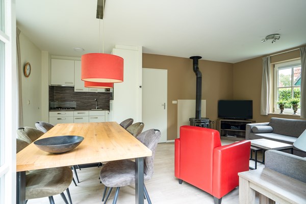 Op zoek naar een ontspannen vakantiewoning direct grenzend aan het Drents-Friese Wold? Deze sfeervolle woning met sauna EN houtkachel gelegen aan een rustig hofje (achterzijde grenzend aan rustig groenperceel) in het villapark “Hunerwold State”, biedt alles wat je nodig hebt! De woning is geschikt voor 6 personen (momenteel verhuurd als 4-persoons CE) en beschikt over een slaap- en (nieuwe) badkamer op de begane grond. De ruime tuin rondom de woning beschikt over een mooi terras waar je heerlijk kunt genieten van de rust en natuur. Er is parkeergelegenheid voor één auto op eigen terrein. De huidige eigenaar verhuurt de woning via Landal, waarbij de volledige verhuur wordt verzorgd. De bungalow is compleet ingericht en voldoet aan alle moderne eisen. In 2020 is de keuken vernieuwd en voorzien van moderne apparatuur en in 2024 is er een nieuwe CV-ketel geplaatst, wat zorgt voor extra comfort en energie-efficiëntie. Je kunt eigen gebruik en verhuur combineren, zonder dat je je zorgen hoeft te maken over het beheer. Een handige, extra optie bij verhuur is de mogelijkheid om een van de slaapkamers op de eerste verdieping af te sluiten, zodat je persoonlijke spullen veilig kunt opbergen en de kamer uitsluitend voor eigen gebruik beschikbaar blijft. Omgeving Het villapark grenst direct aan het Drents-Friese Wold, bekend om zijn uitgestrekte bossen en het Aekingerzand, ook wel De Kale Duinen genoemd. Dit natuurgebied is een paradijs voor fietsers en wandelaars. Hunerwold State is de ideale uitvalsbasis om deze prachtige omgeving te verkennen! Dankzij een overeenkomst met Landal zijn er uitstekende verhuurmogelijkheden op het villapark. Het verplichte lidmaatschap van de Coöperatieve Vereniging Villapark Hunerwold State zorgt voor goed onderhoud van zowel de villa’s als het park. Indeling Begane grond: Entree met pvc-vloer * Modern toilet met fontein en mechanische ventilatie * Comfortabele badkamer met dubbele wastafel en inloopdouche * Slaapkamer met tweepersoons boxspring en voldoende kastruimte * Sfeervolle, tuingerichte woonkamer met houtkachel en openslaande tuindeuren naar het terras * Open keuken met moderne hoekopstelling en apparatuur (vernieuwd in 2020), voorzien van gaskookplaat, afzuigkap, vaatwasser, koelkast en combimagnetron * Buitenom bereikbare berging 1e verdieping: * Overloop * Twee slaapkamers, waarvan één met sauna (mogelijkheid om een slaapkamer af te sluiten voor eigen gebruik) * Toilet met wastafel * CV-ruimte met nieuwe CV-ketel (2024) * Aangebouwde berging: Oppervlakte: ca. 6 m² Constructie: Halfsteens metselwerk, houten kozijnen, betonnen vloer, dakbeschot met pannen dakbedekking Voorzien van elektra. Mis deze unieke kans niet om eigenaar te worden van deze prachtige recreatiewoning in een van de mooiste natuurgebieden van Nederland. Of je nu op zoek bent naar een vakantiewoning voor eigen gebruik, een investering met uitstekende verhuurmogelijkheden, of een combinatie van beide, deze woning biedt het allemaal. Neem vandaag nog contact op voor meer informatie en plan een bezichtiging. Ontdek de rust en schoonheid van Hunerwold State zelf!