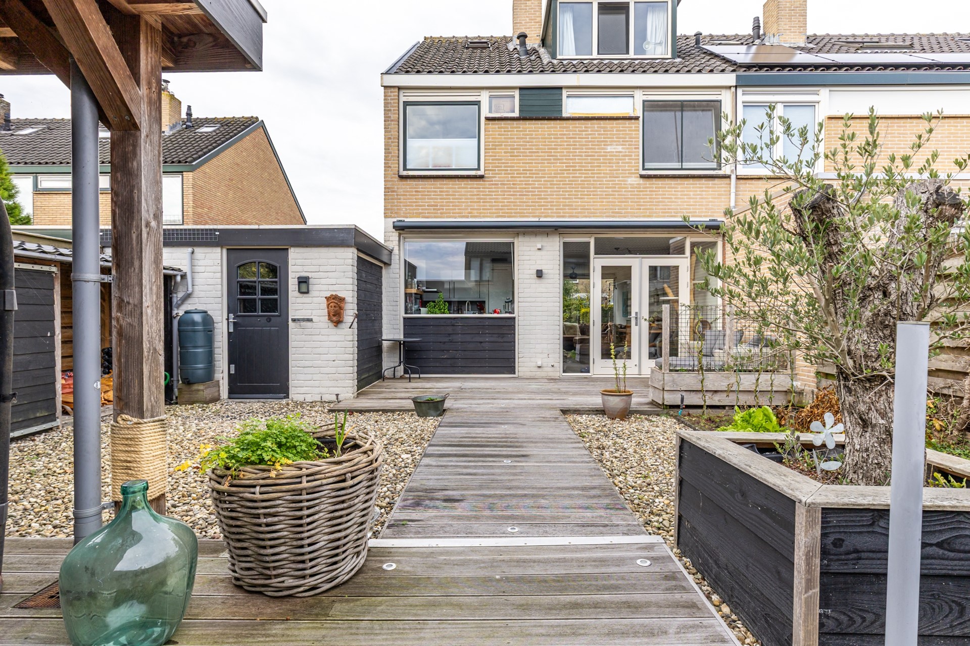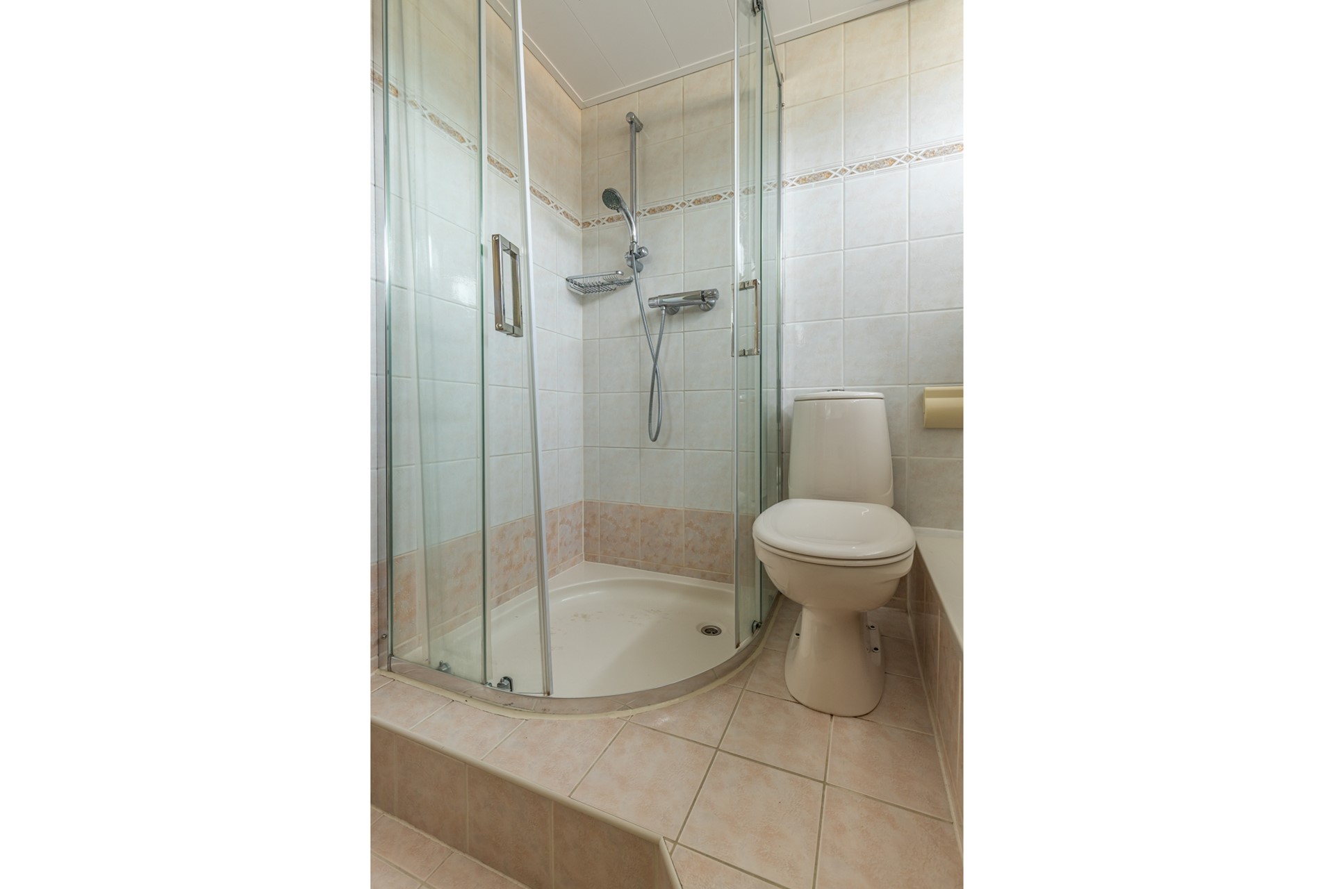 Installaties, sanitair en voorzieningen: De woning is technisch goed bijgehouden en beschikt over moderne en betrouwbare installaties. De cv-ketel (Vaillant EcoTec Plus VHR25-30, 2016) is in juni 2024 onderhouden door De Eilanden en is volledig in eigendom. In de woonkamer en keuken ligt vloerverwarming. Rookmelders zijn geplaatst in 2023 en de schoorsteenkanalen zijn in 2025 geveegd, waarbij de trek goed is bevestigd. De woning heeft geen zonnepanelen of mechanische ventilatie. De badkamer is uit 1999 en netjes uitgevoerd. De keuken is vernieuwd in 2020 en de apparatuur functioneert goed. Alle afvoeren lopen goed door en de woning is aangesloten op het gemeentelijk riool, zonder bekende gebreken. De hemelwaterafvoer van de overkapping is aangesloten op een infiltratiekrat van 300 liter in de tuin.
