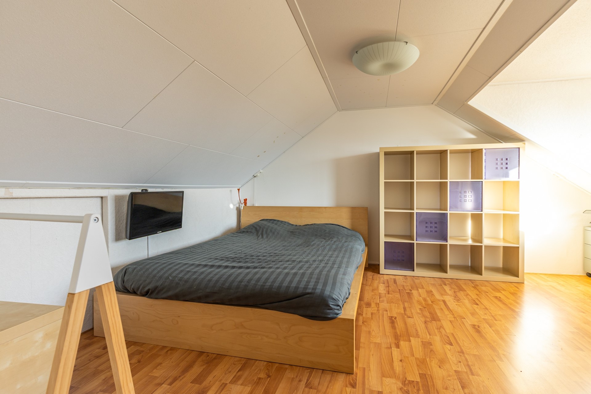Tweede verdieping: Via een vaste trap bereikt u de zolderverdieping. Aan de voorzijde bevindt zich de CV-opstelling en extra bergruimte. De grote zolderkamer is vergroot met een dakkapel met kunststof kozijnen en vormt een volwaardige vierde slaapkamer.