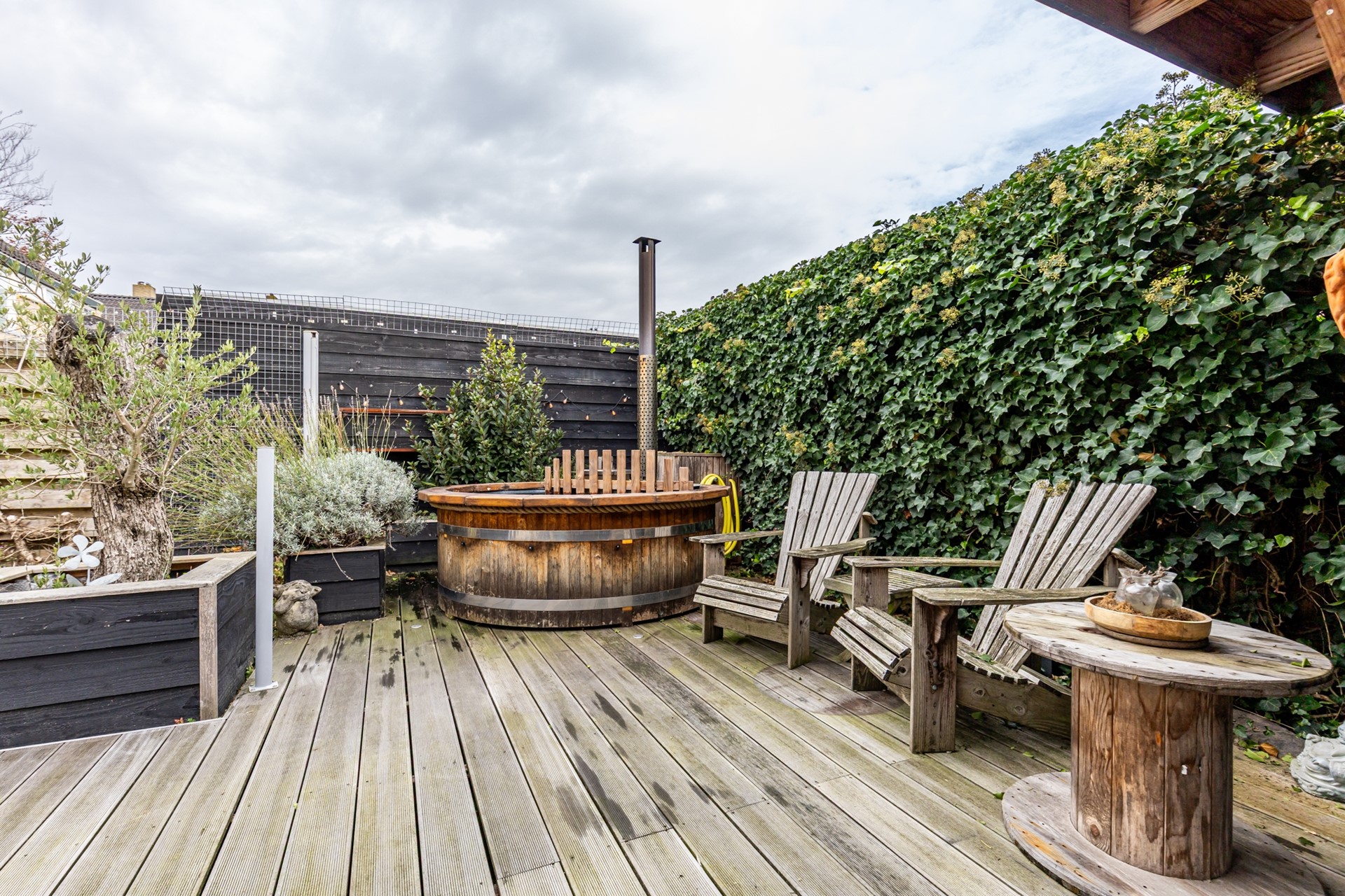 Buitenruimte: De achtertuin ligt op het oosten en is verzorgd aangelegd. De overkapping met houtkachel is een fijne plek om het hele jaar door buiten te zitten. De hottub geeft de tuin een luxe en ontspannen sfeer. De garage (met vernieuwd dak) en de grote oprit voor meerdere auto’s maken het geheel compleet.
