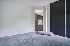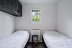 De grootste slaapkamer is compleet ingericht met een 160x210cm tweepersoonsbed en een vaste kastenwand. De kleinere slaapkamer is voorzien van twee eenpersoonsbedden van 80x200cm met aan beide zijden een opbergkast.
