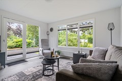 De veranda is deels overdekt en deels afsluitbaar. De inbouwverlichting zorgt voor sfeer in de avond. De glazen schuifpui kun je openzetten. Op en tot genieten dus!