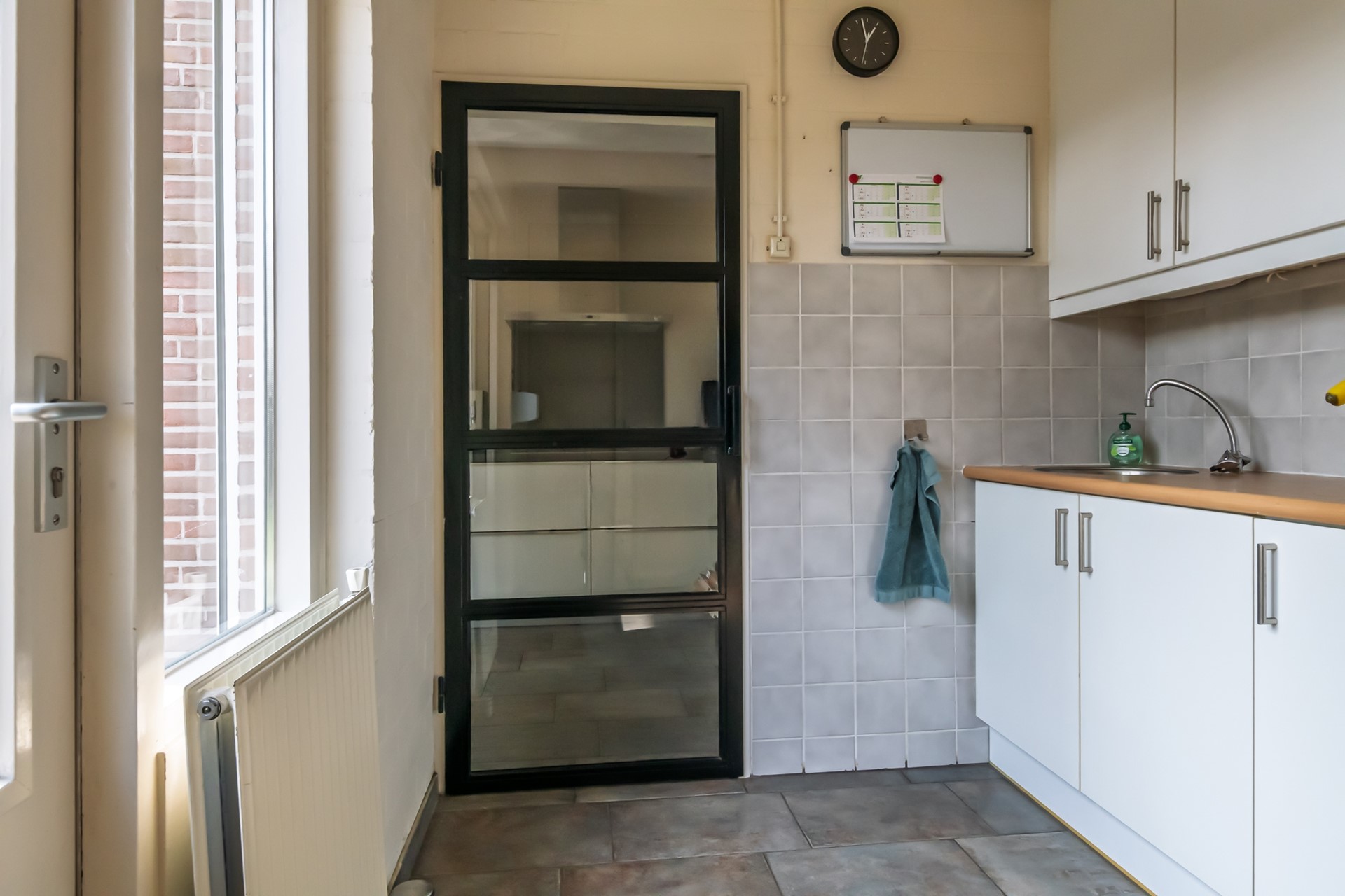 • Bijkeuken met aanrechtblok en inbouwkast (wasmachine, wasdroger, diepvries)