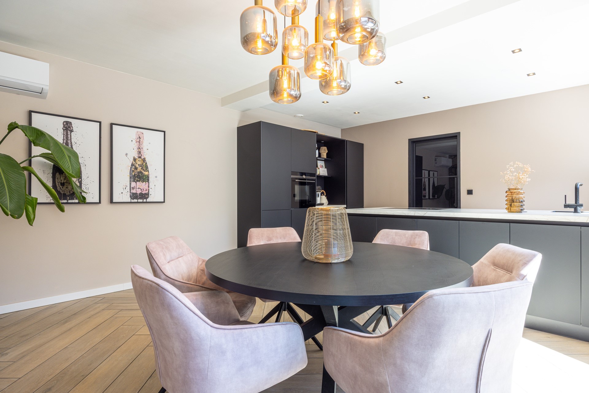 De combinatie van karakteristieke elementen, zoals de zichtbare houten balken, met een strakke en eigentijdse afwerking maakt dit een woning met een eigen uitstraling. Daarnaast is er veel aandacht besteed aan comfort en duurzaamheid, met onder andere vloerverwarming op de begane grond, airco-installaties en maar liefst 20 zonnepanelen (eigendom).