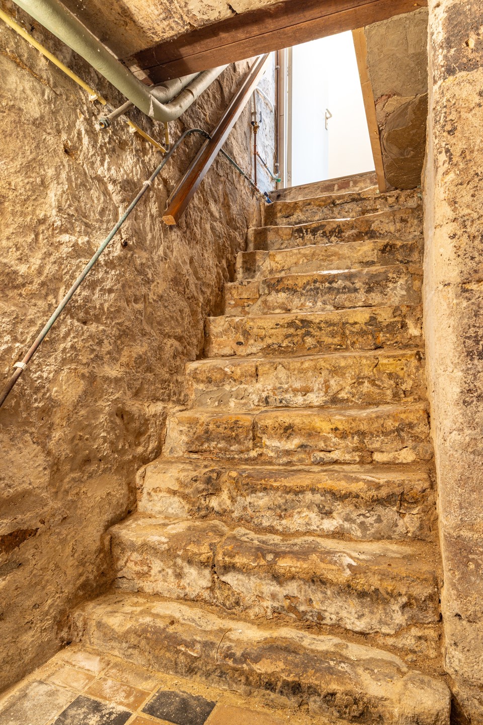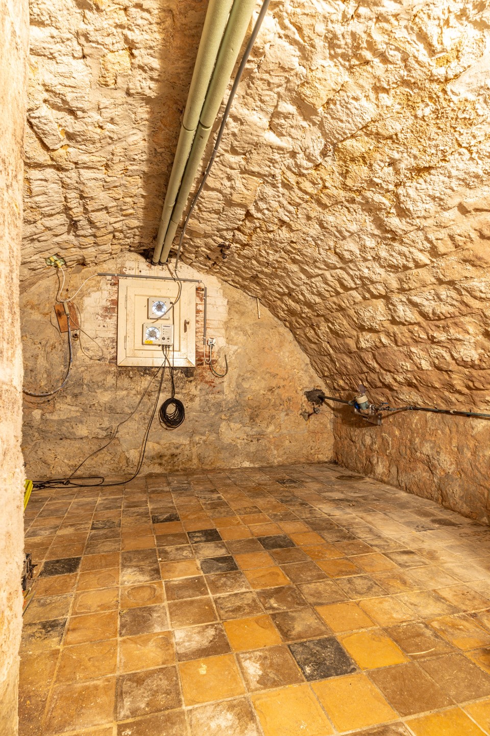 De woonkamer is ruim van opzet en valt direct op door de combinatie van moderne afwerking en karaktervolle houten balken, die zorgen voor een warme en sfeervolle uitstraling. De tegelvloer in visgraatmotief met houtlook en vloerverwarming loopt mooi door en zorgt voor een aangenaam en comfortabel geheel. Dankzij de raampartijen met hardhouten kozijnen en HR++ beglazing profiteer je hier van veel daglichtinval. De indeling biedt voldoende ruimte voor zowel een royale zithoek als een eethoek. Een fraai detail is de ingebouwde wijnkast in de muur, die het geheel een luxe en eigentijds accent geeft. Vanuit de woonkamer zijn zowel de trap naar de eerste verdieping als de toegang tot de bergkelder bereikbaar, welke ideaal is voor het opslaan van provisie en overige spullen.