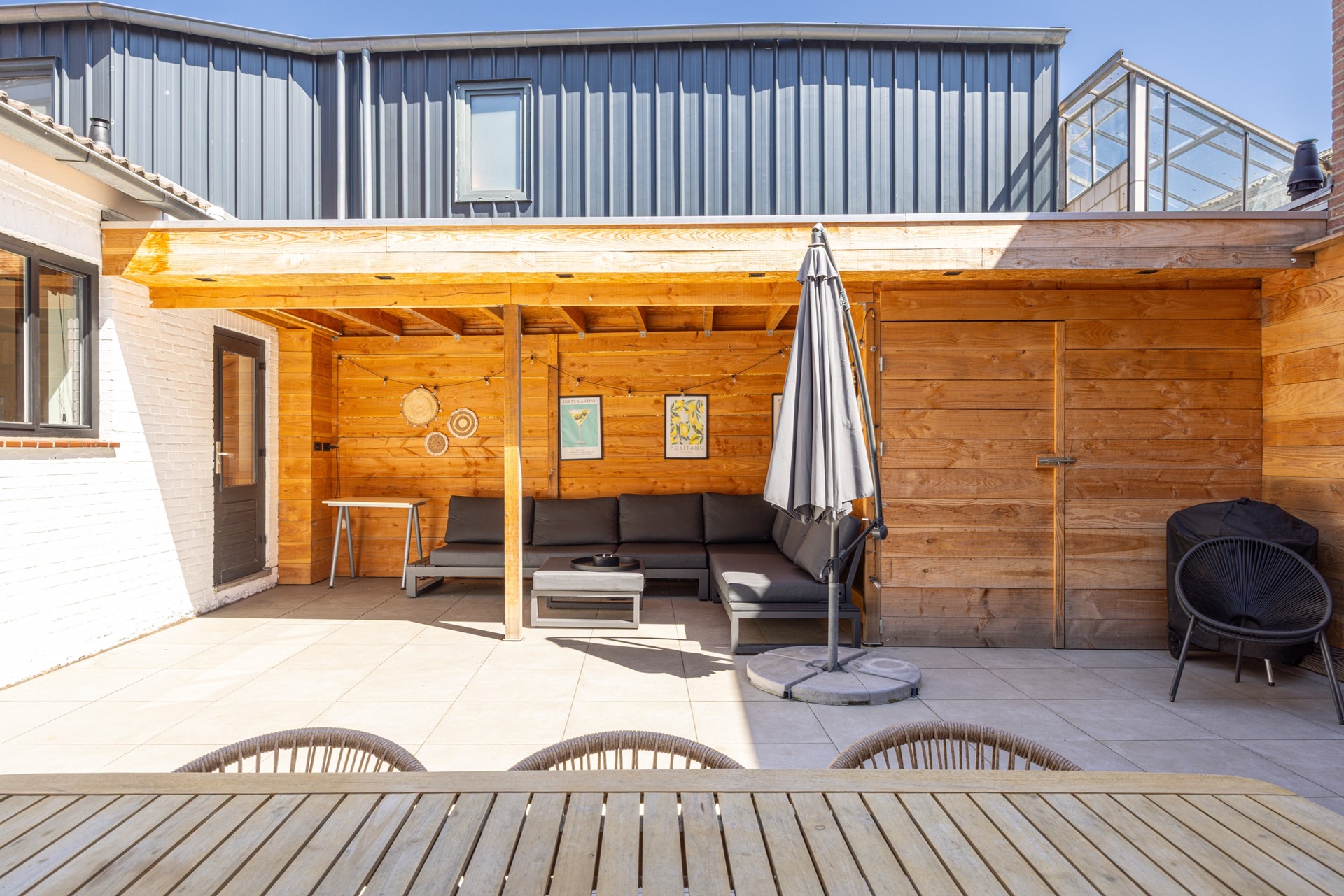 De onderhoudsvriendelijke tuin met overkapping en de praktische achterom via het overdekte pad maken het geheel compleet.