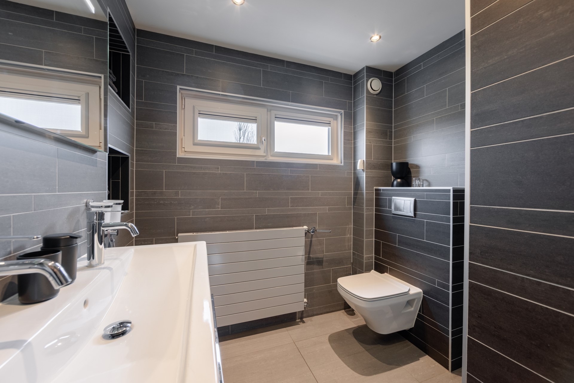 Op de eerste verdieping zijn de eerste drie slaapkamers. De badkamer heeft een inloopdouche, een dubbele wastafelmeubel en een wandcloset.