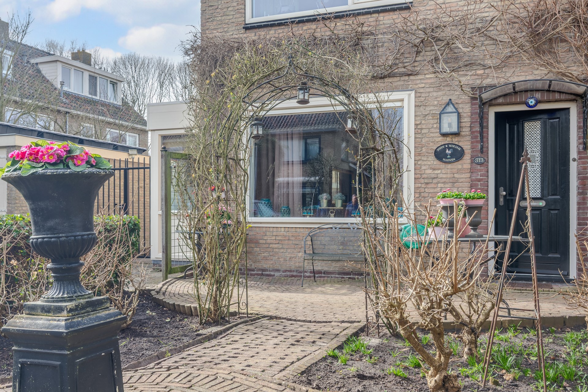 Ook de voortuin is opvallend ruim en speels aangelegd. Hier kun je twee auto’s op eigen terrein parkeren, wat in deze omgeving een groot pluspunt is.