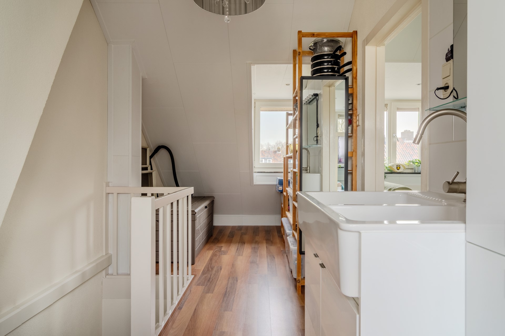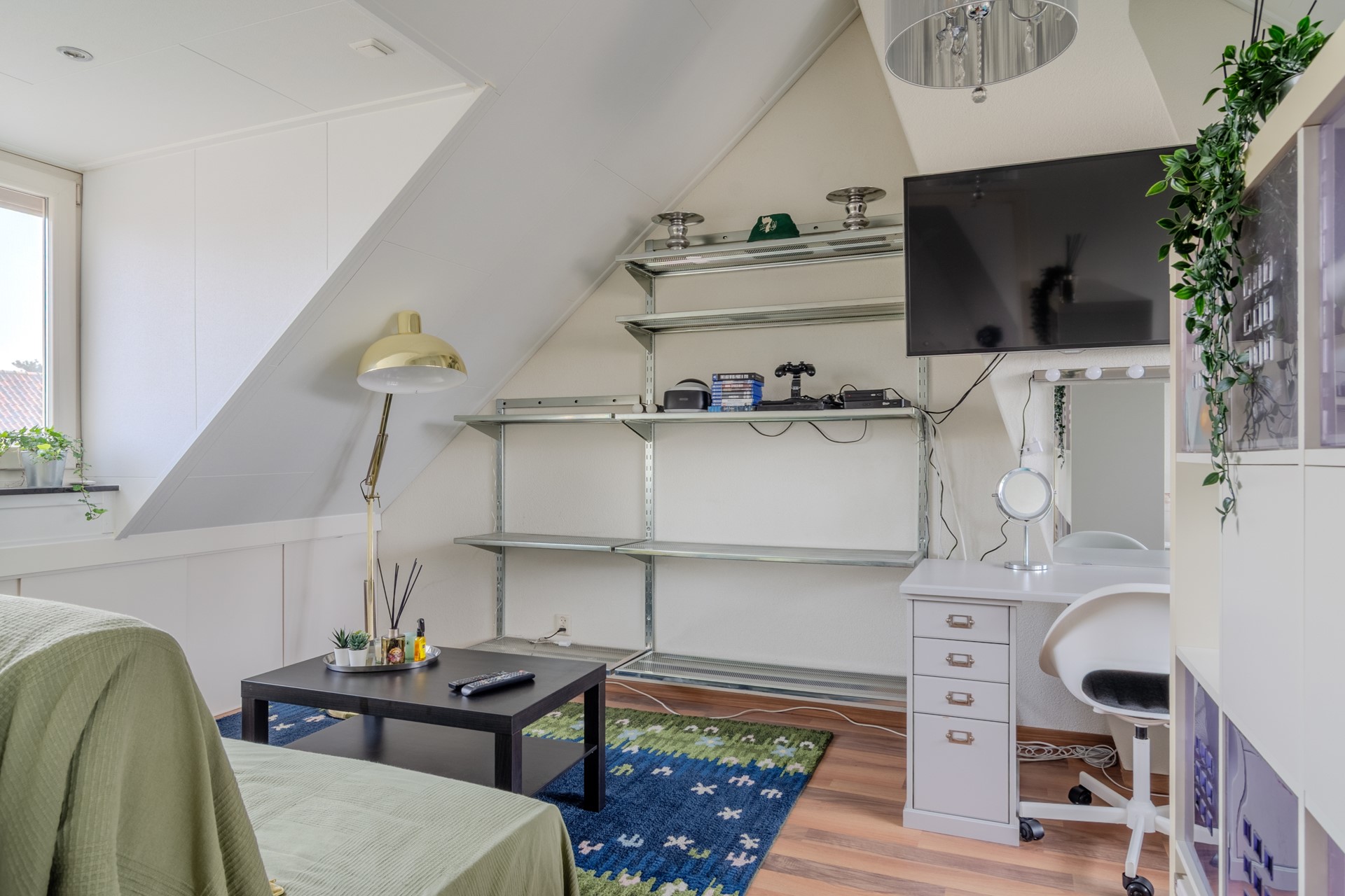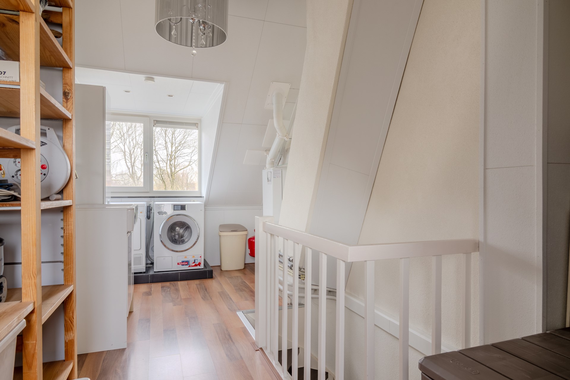 De verdieping bestaat uit een overloop met wastafelmeubel, wasmachine- en drogeraansluiting en de opstelling van de cv-ketel (2024). Daarnaast vind je hier een ruime vierde slaapkamer met dakkapel en een hoge nok, wat zorgt voor een prettig ruimtelijk gevoel.