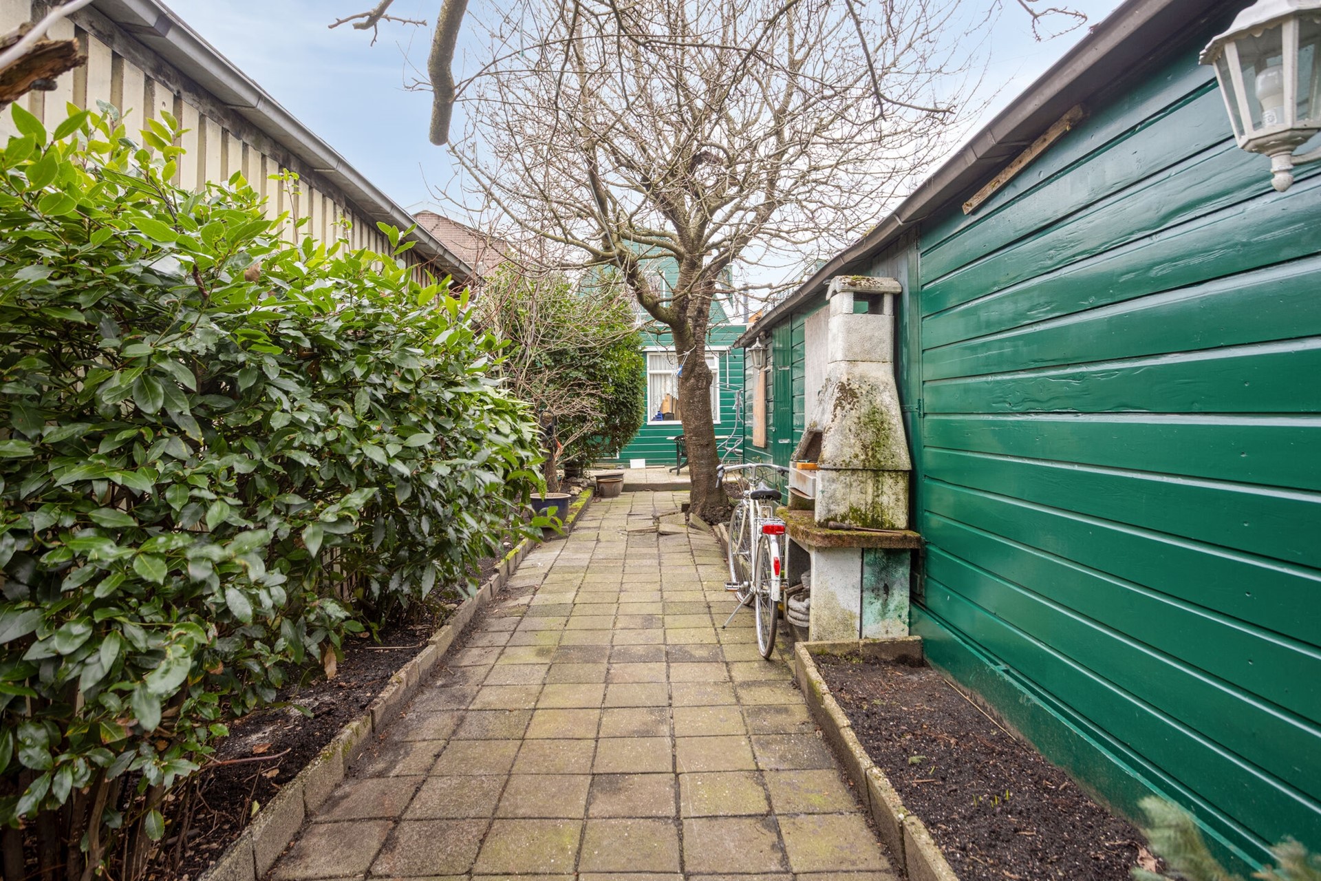 In de riante achtertuin is een schuur van maar liefst 22m2. De tuin loopt geheel door naar de andere kant van de straat waar zich een poort bevind die toegang geeft tot de Eendrachtstraat.